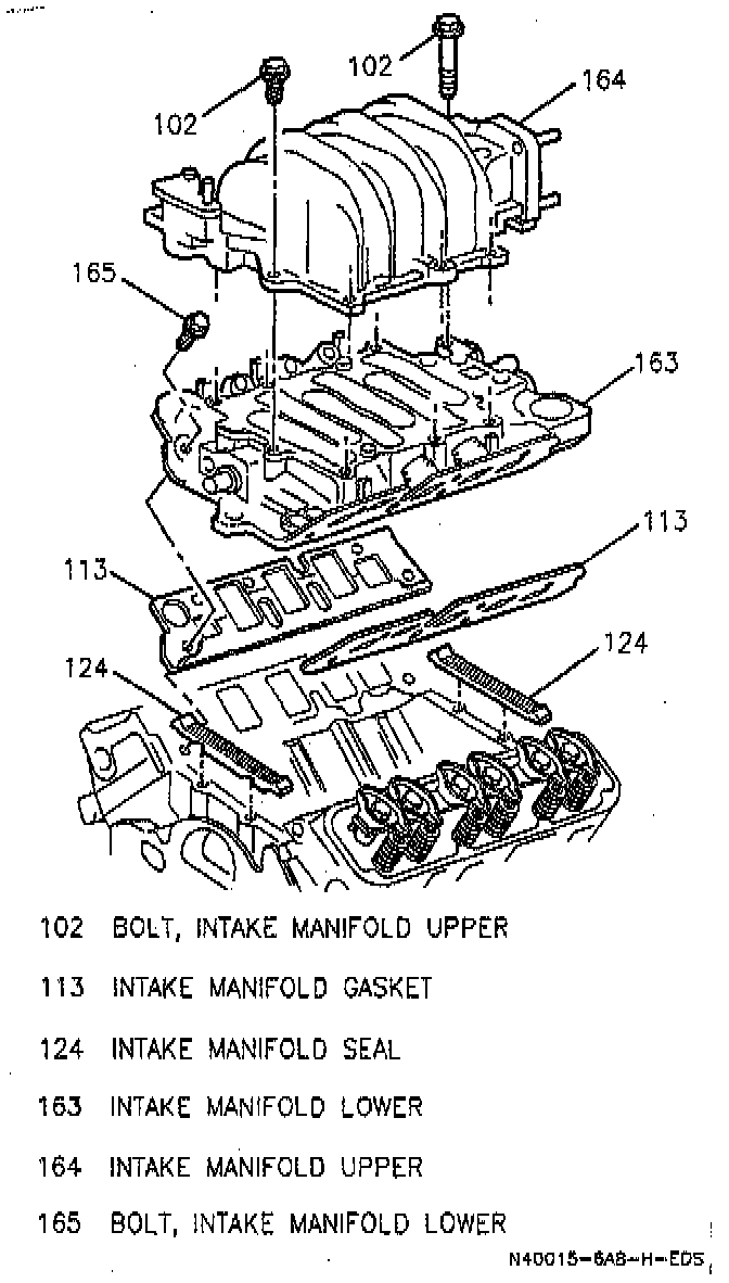 - Apply sealer GM P/N 12345336 (or equivalent) to ends of intake manifold seals.