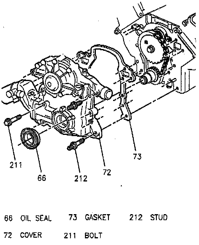 7. Front cover attaching bolts and cover.