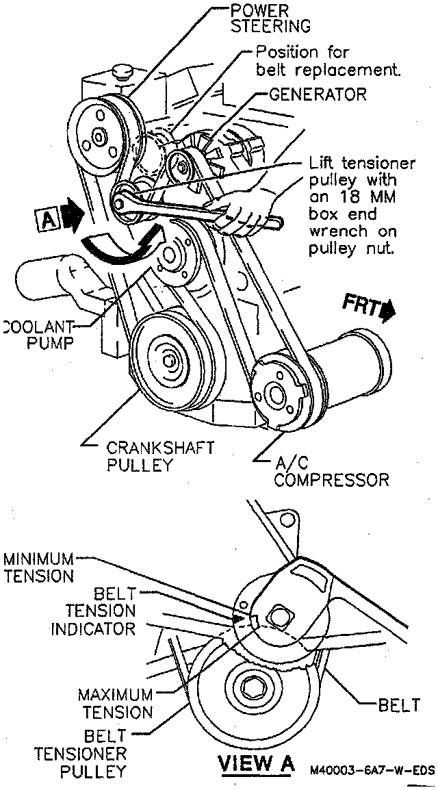 1. Inspect tensioner markings to see if the belt is within operating lengths. Replace belt if the belt is excessively worn or is outside of the tensioner's operating range.