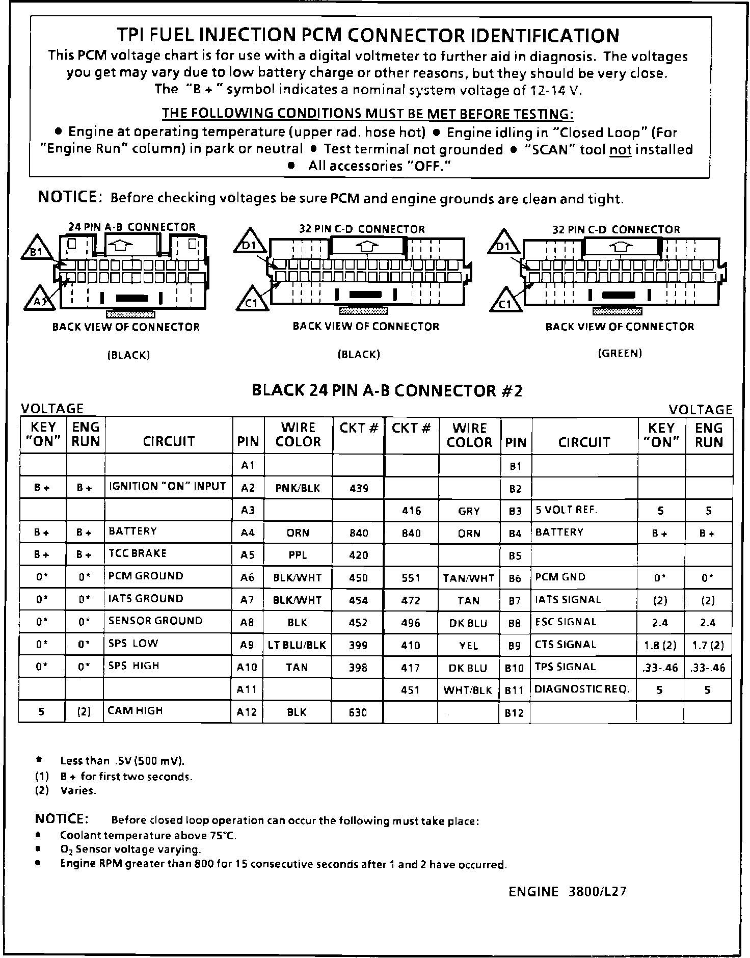 PCM Pin/Voltage Chart (1 Of 2):