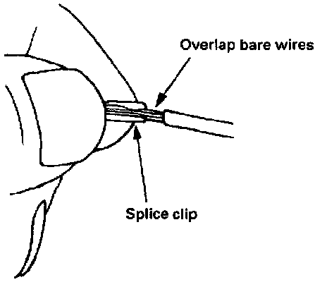 Begin by cutting as little wire off the harness as possible. You may need the extra length of the wire later if you decide to cut more wire off to change the location of a splice. You may have to adjust splice locations to make certain that each splice is at least 40 mm (1-1/2") away from other splices, harness branches or connectors.
