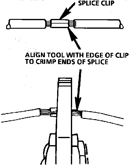 ^ No insulation is caught under the clip. Crimp the splice again, once on each end. Do not let the crimping tool extend beyond the edge of the clip or you may damage or nick the wires, Fig. 9.