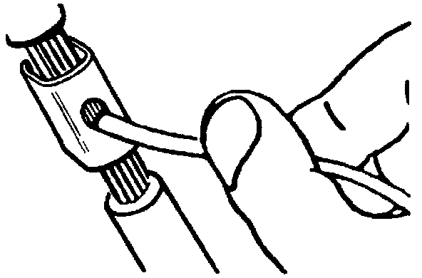 ^ Open the crimping tool to its full width and rest one handle on a firm flat surface.