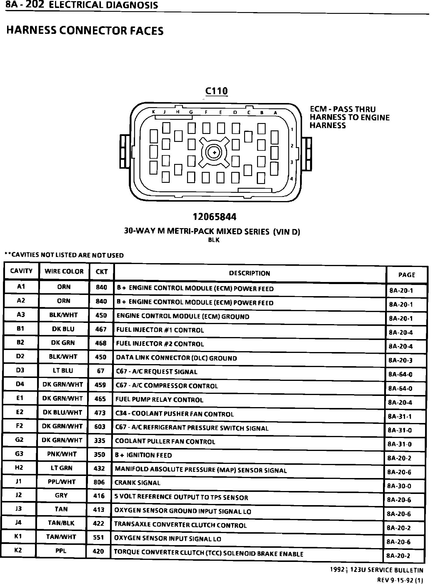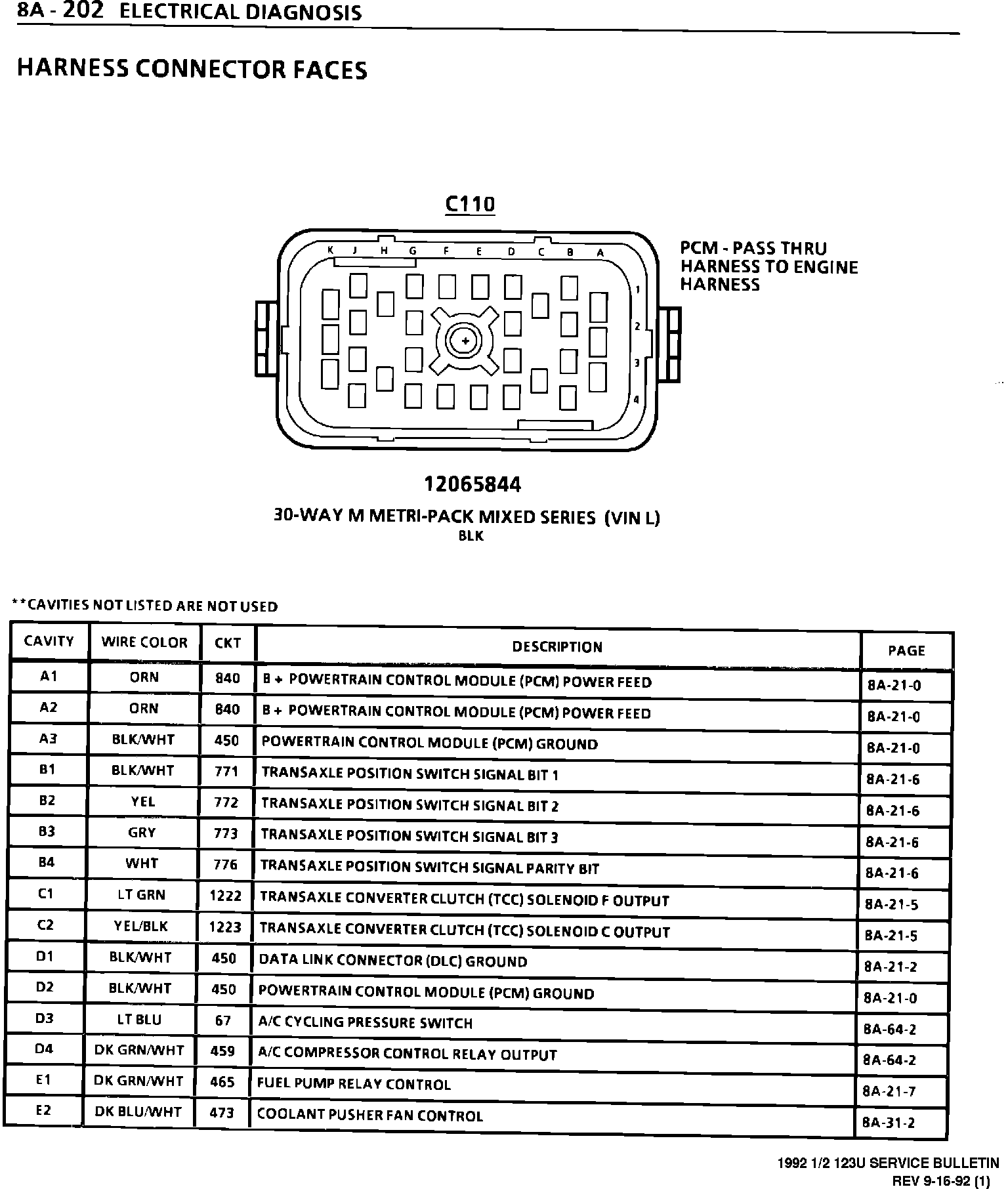 SERVICE MANUAL UPDATE - SECTION 8A PASS THRU HARNESS CONNECTOR