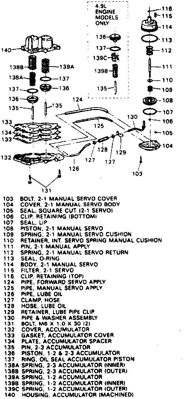 136. Inspect accumulator pin for scoring, then the spring for bent or collapsed coils.