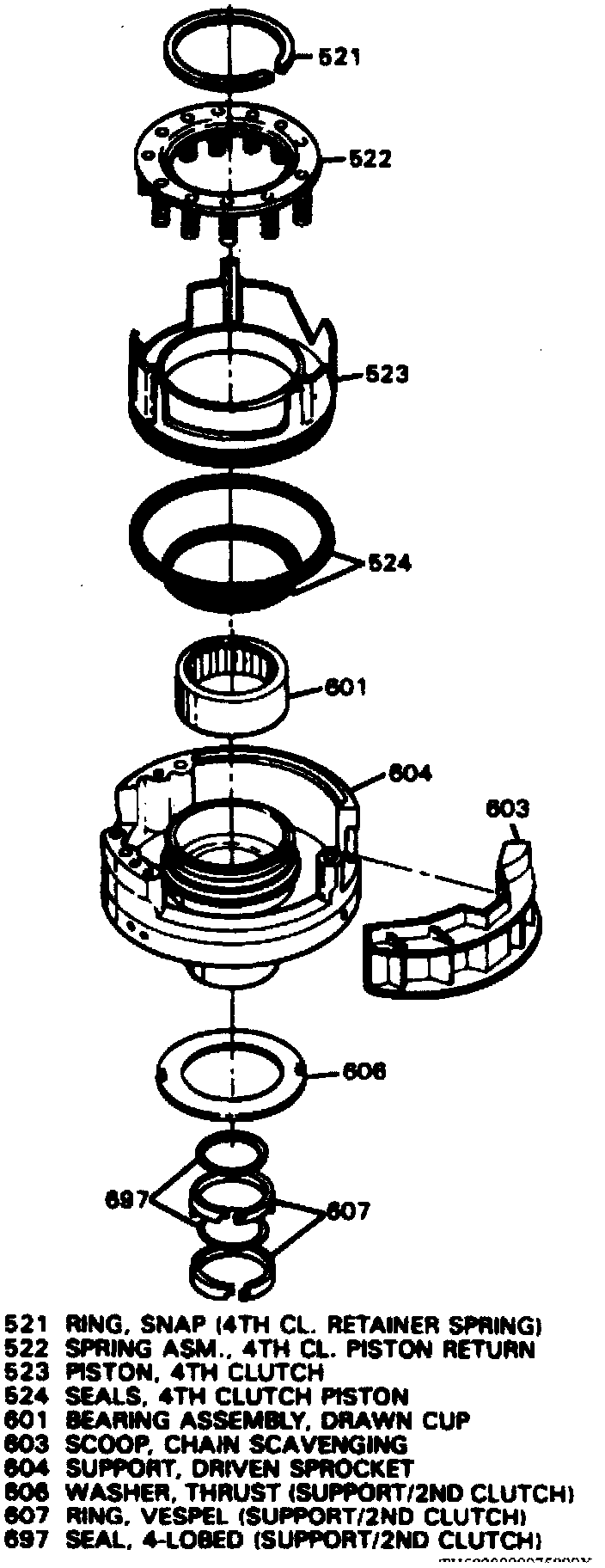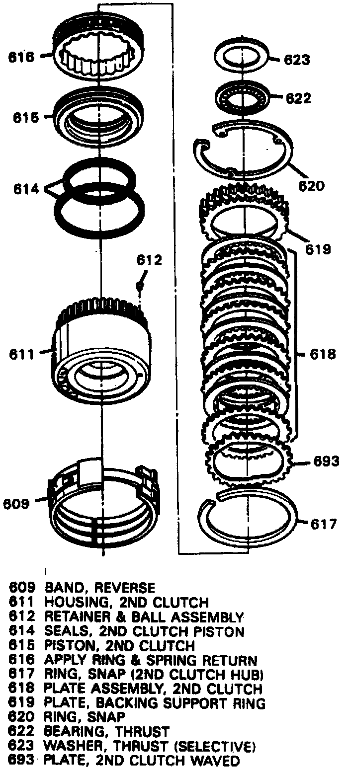 106. Inspect selective 2nd clutch thrust bearing and washer for damage and replace as needed.