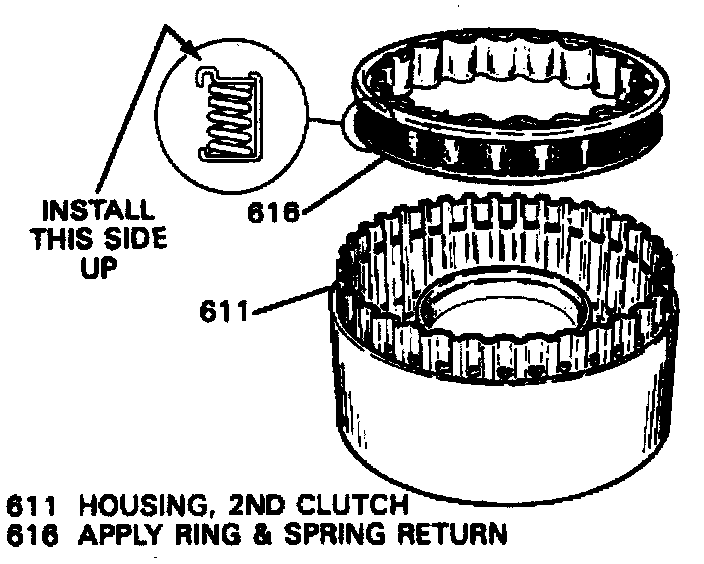 103. Install 2nd clutch piston and the apply ring and spring return assembly, then secure with snap ring.