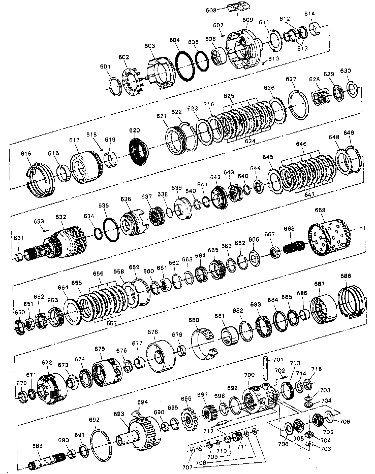 185. Inspect accumulator pistons and seals for damage and replace seals as necessary, then check springs for collapsed or damaged coils.