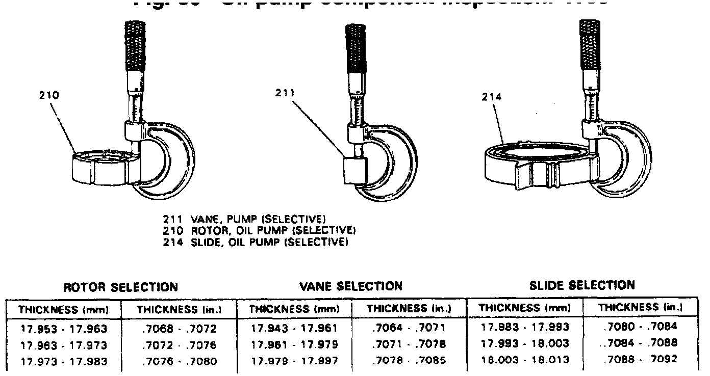 b. Select properly sized replacement as shown in charts. Failure to select properly sized replacements for the rotor, vane or slider will cause damage to transaxle.