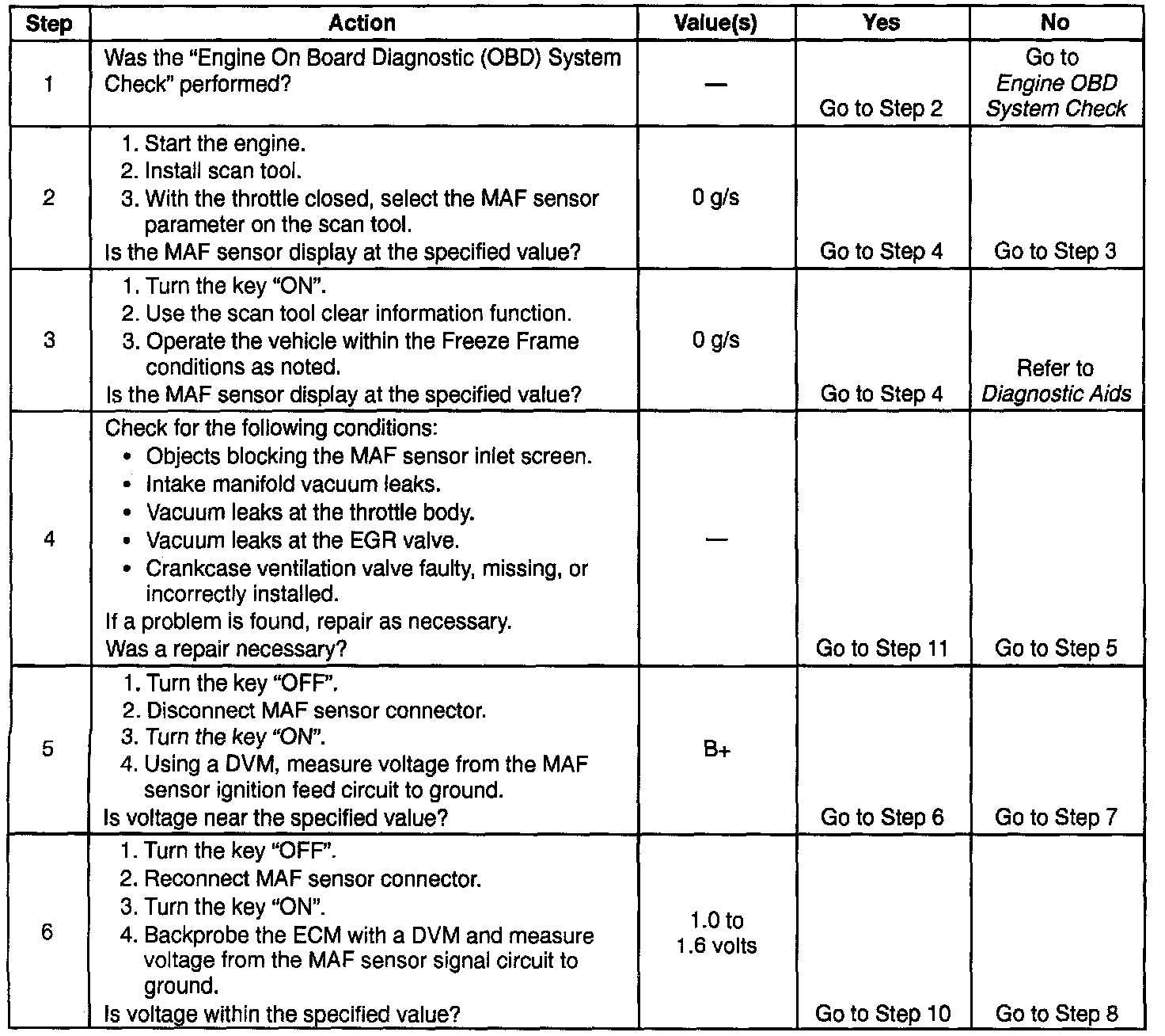 DTC P0102 Mass Air Flow (MAF) Sensor Circuit Low Frequency (2 Of 2):