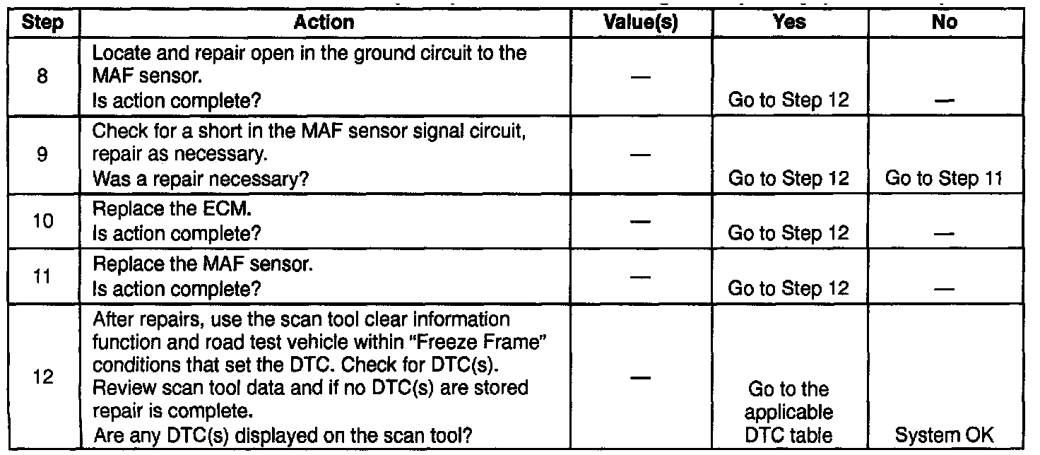 - Damaged harness. Inspect the wiring harness for damage. If the harness appears to be OK, observe the scan tool while moving connectors and wiring harnesses related to the MAF sensor. A change in the display will indicate the location of the fault.