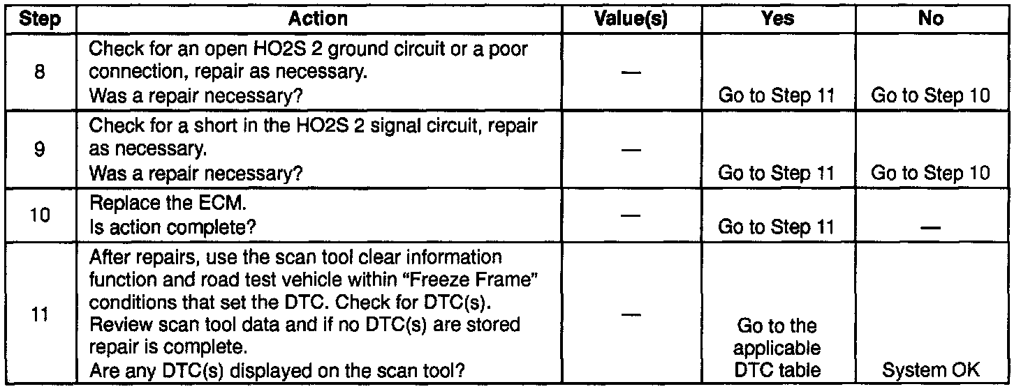 4. The HO2S sensor 2 may be shorted to ground, if so the voltage value displayed in the values column may not change, if so check for a short to ground in the HO2S sensor 2 signal circuit.