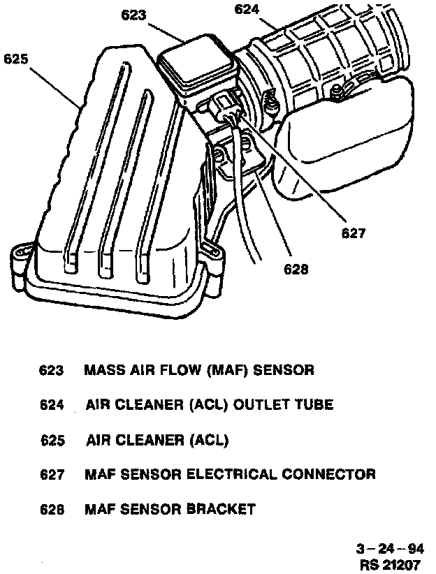 The heat resistor is cooled off by the air entering the MAF sensor. The control circuit controls the heat resistors temperature within a predetermined range of the ambient temperature. As the amount of air entering the sensor increases, then so does the sensors signal current to the ECM. As air flow decreases, then so does the signal current to the ECM. The MAF sensor is located in the air intake tube between the throttle body and the Air Cleaner (ACL).