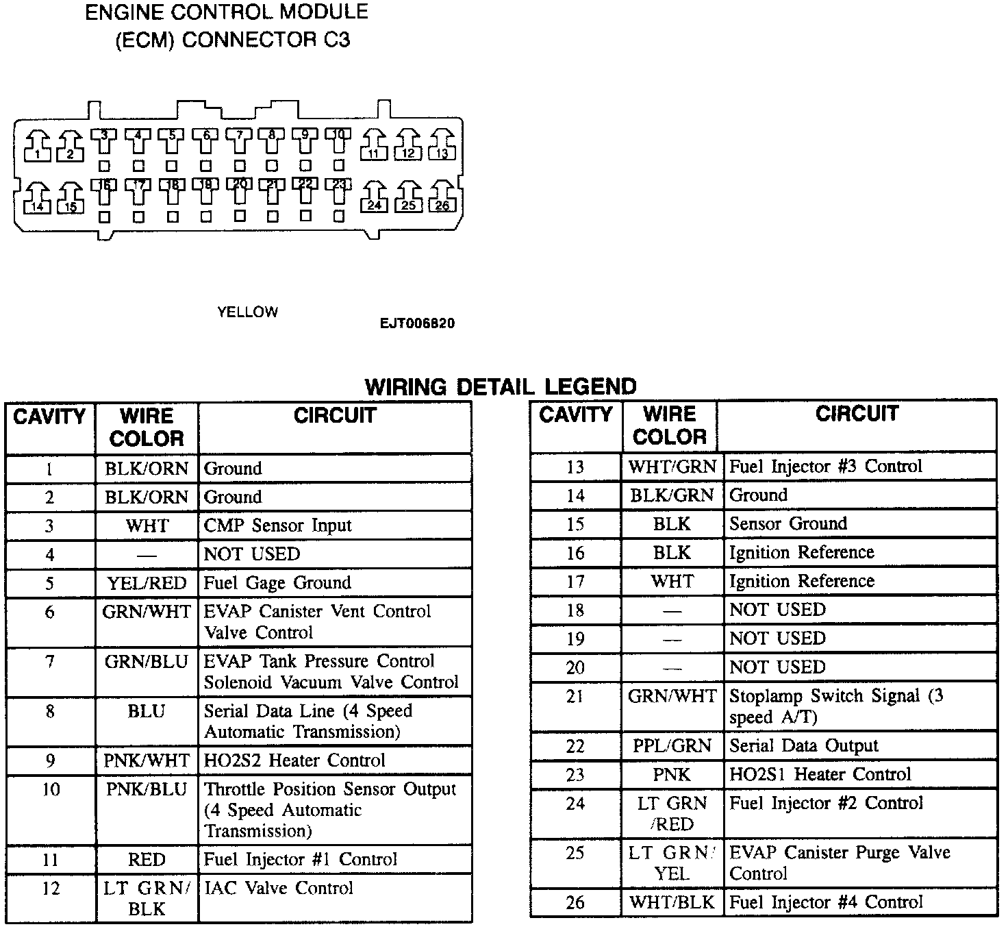 Engine Control Module (ECM) Connector C3: