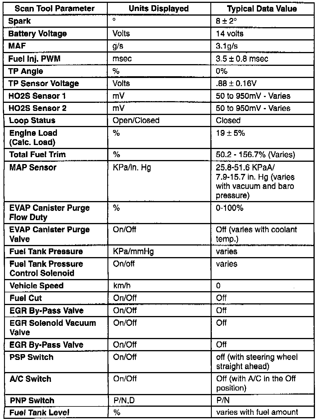 Scan Tool Data List