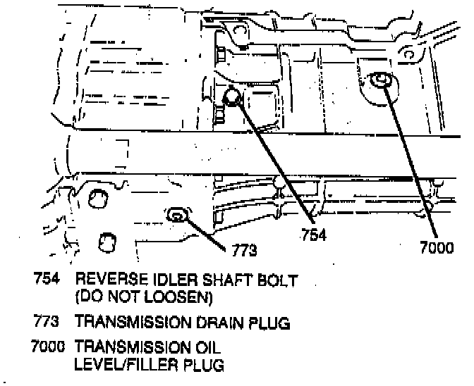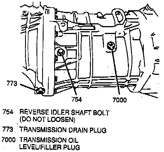 1. Raise and suitably support vehicle.2. Remove transmission oil level filler plug from transmission.