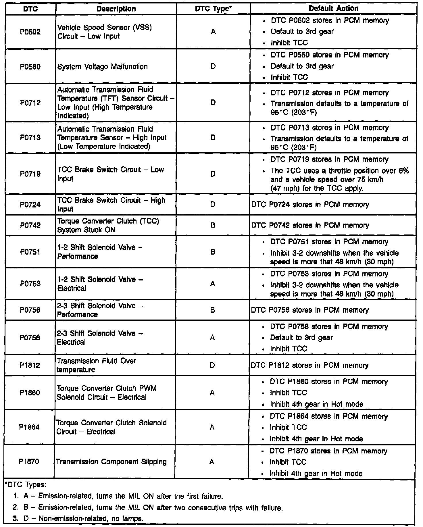 Diagnostic Trouble Code Descriptions