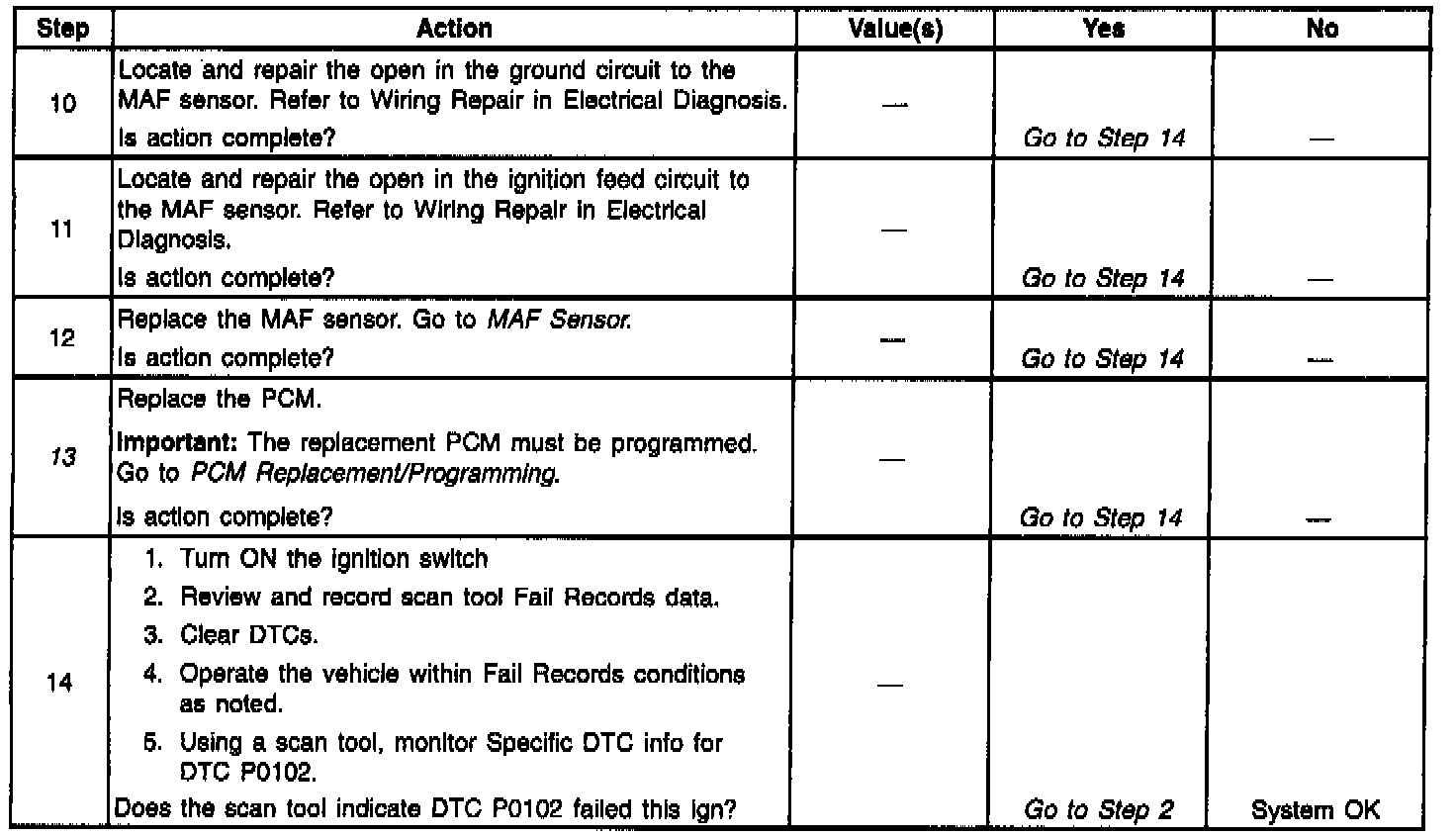 If DTC P0102 cannot be duplicated, the information included in the Fail Records data can be useful in determining vehicle mileage since the DTC was last set.