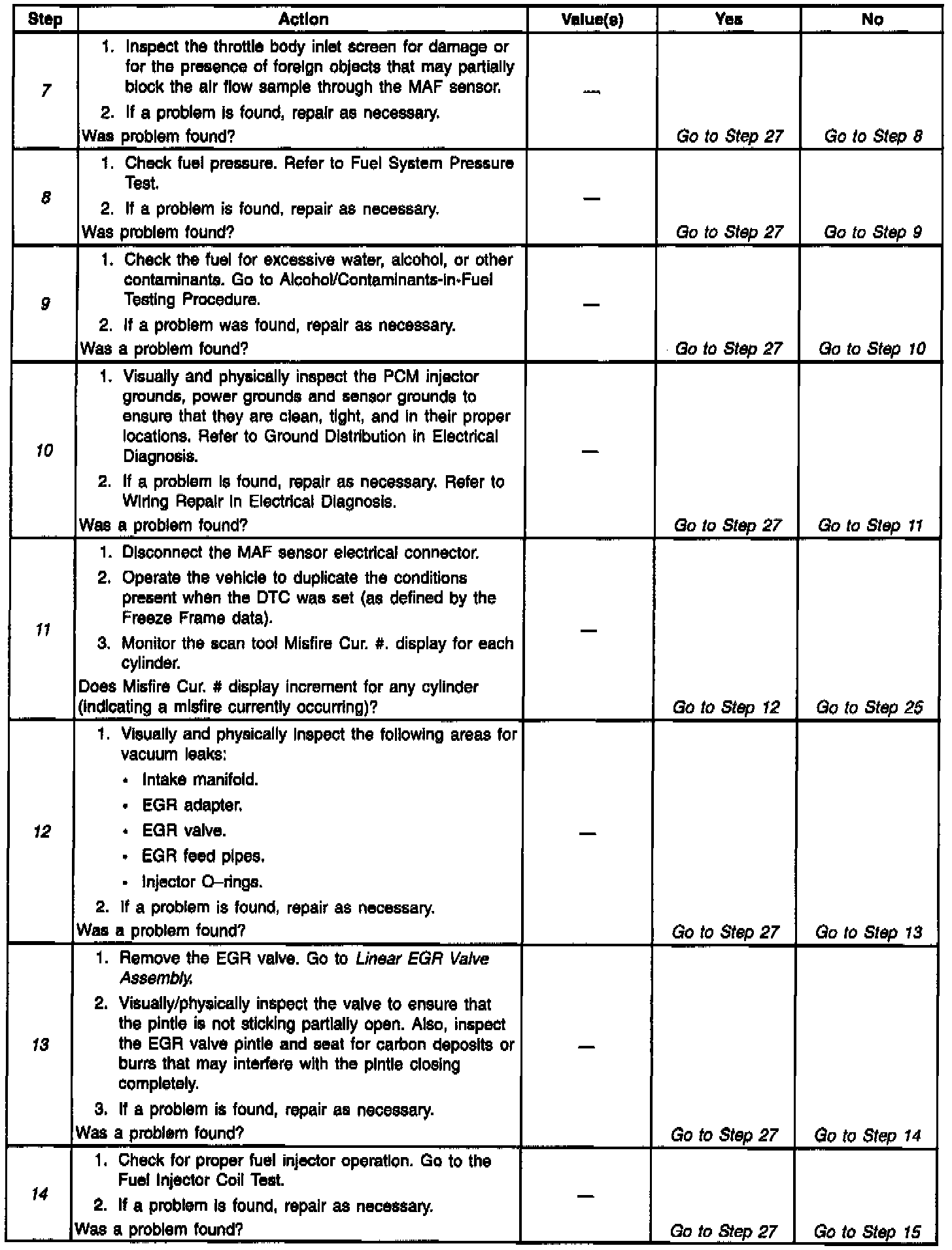 5. Steps 5 through 13 check for conditions that can cause a random cylinder misfire.