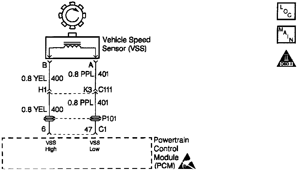 - Check for Electromagnetic Interference (EMI) in circuits 400 and 401. EMI may be induced if the harness is routed along the spark plug wires.