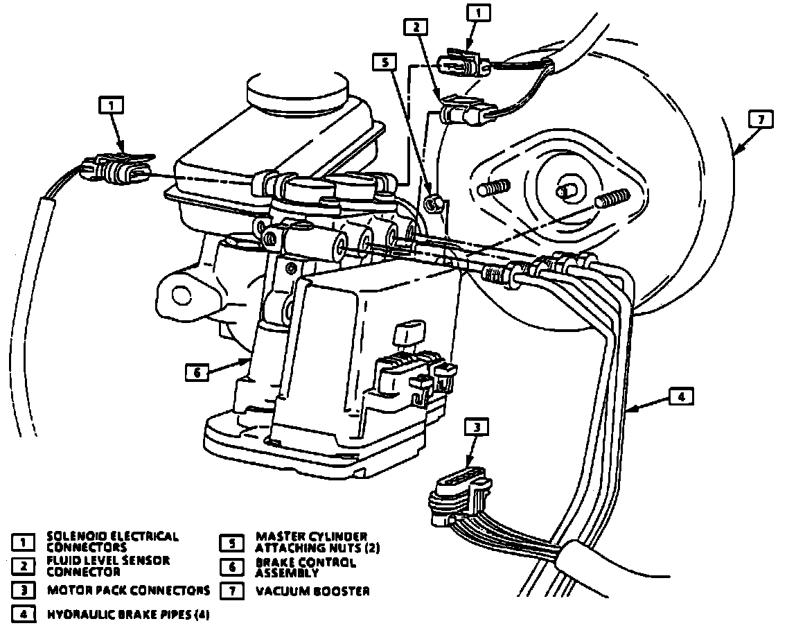 3. Four brake pipes to hydraulic modulator/master cylinder assembly.