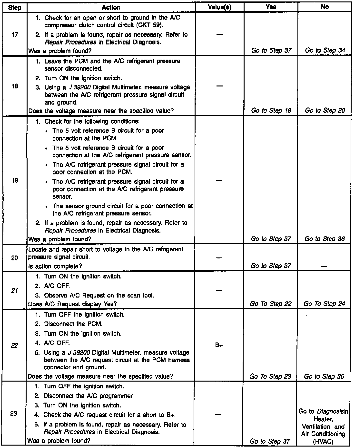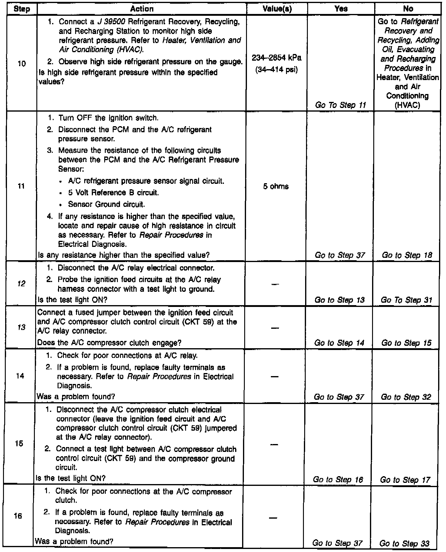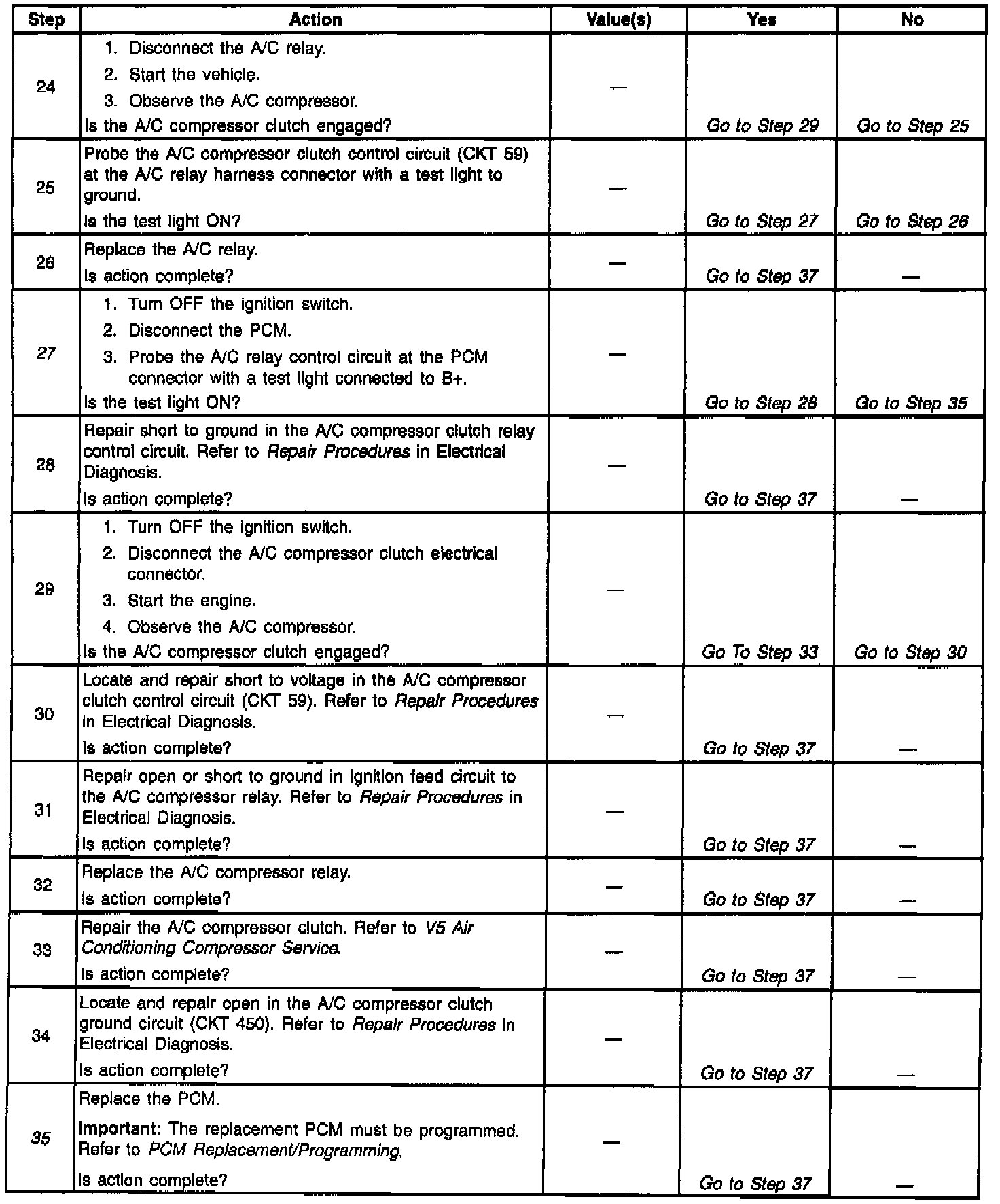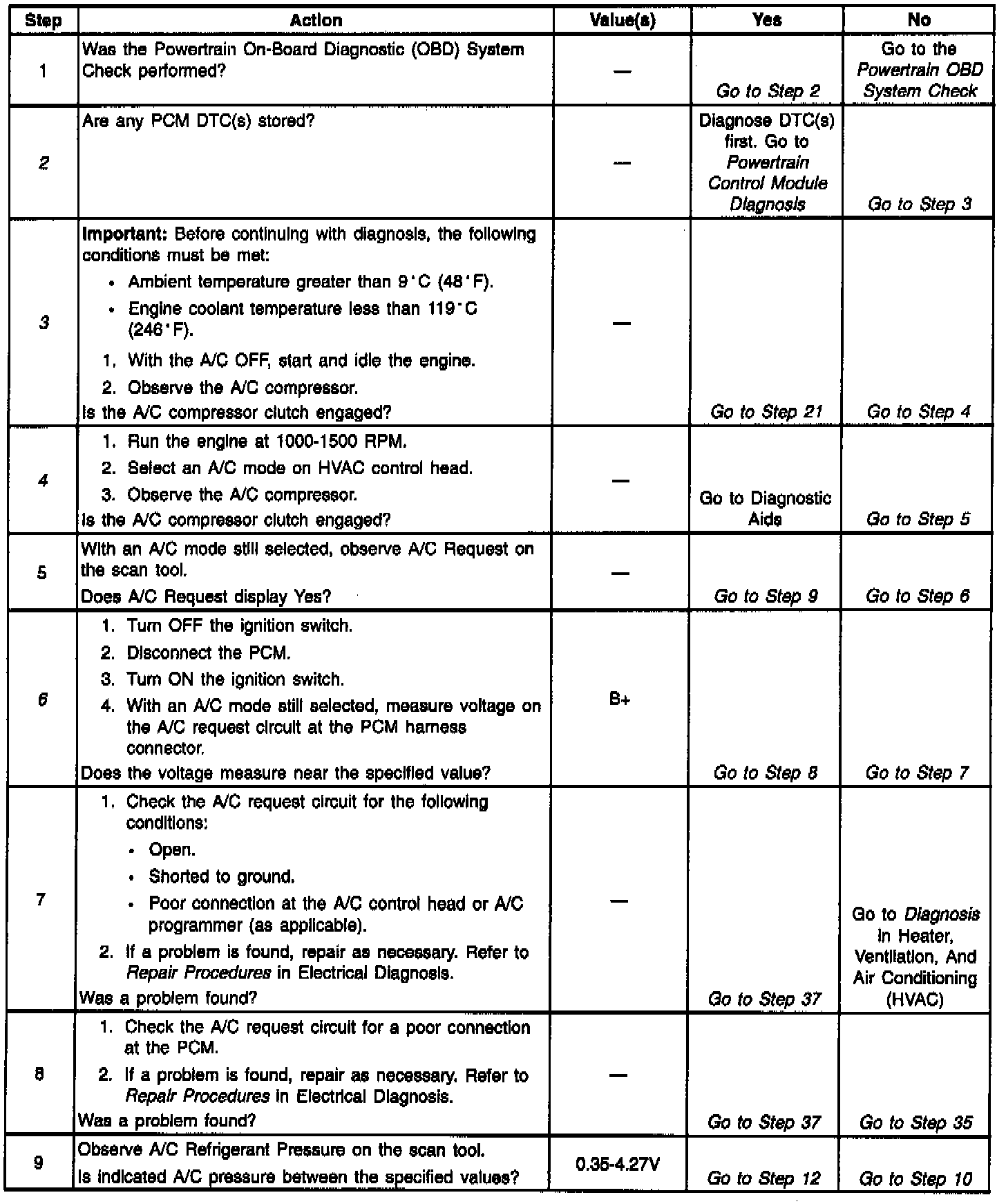 Number(s) below refer to Step number(s) on the diagnostic table: