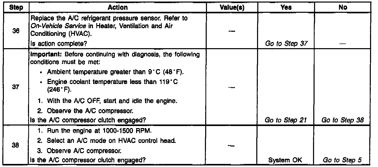 4. The A/C compressor clutch should not be engaged with the engine running if an A/C mode is not selected at the control head.