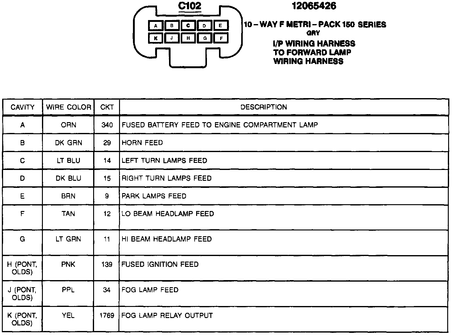 C102: I/P Wiring Harness To Forward Lamp Wiring Harness: