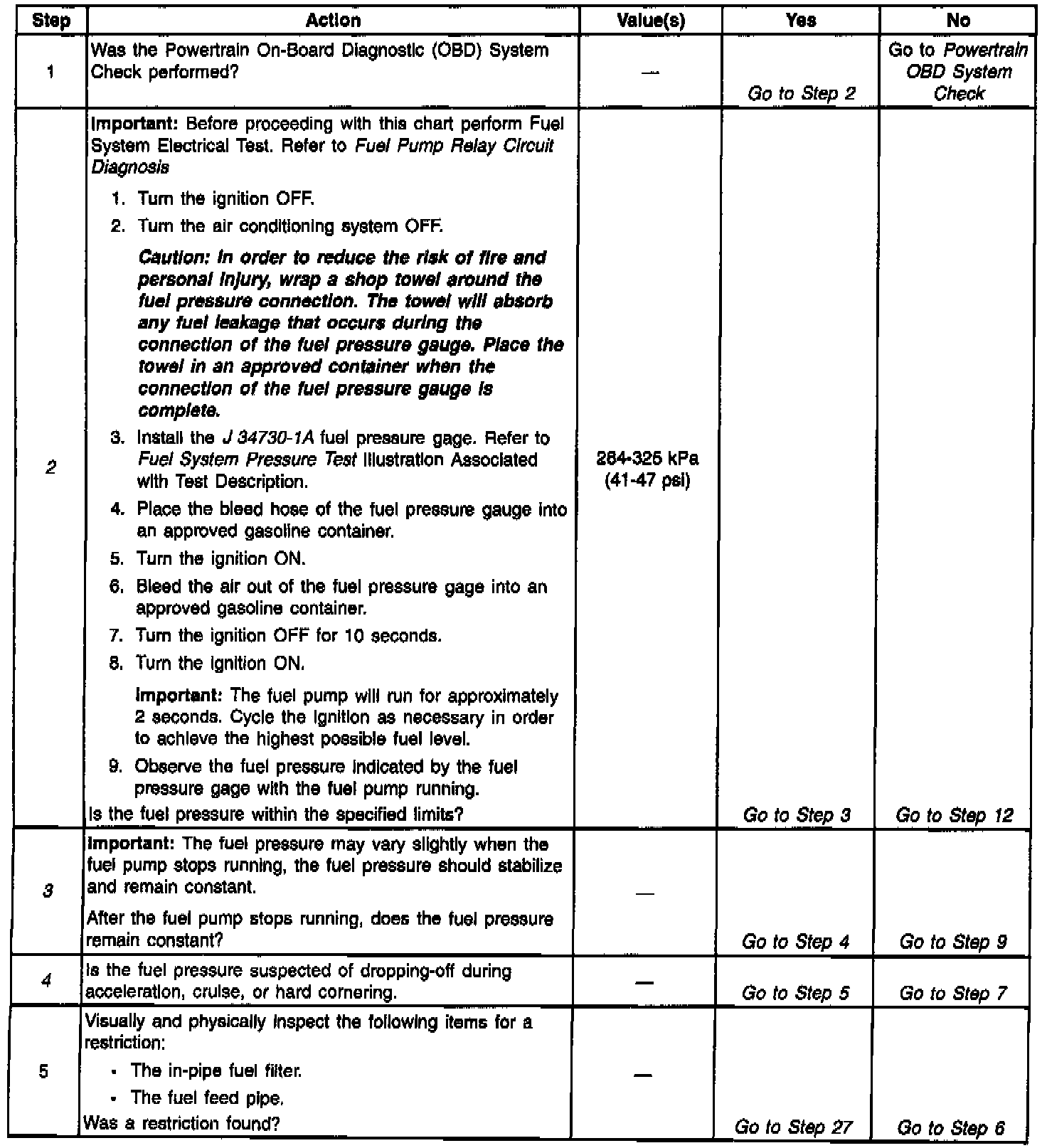System Diagnosis - Fuel System Pressure Test