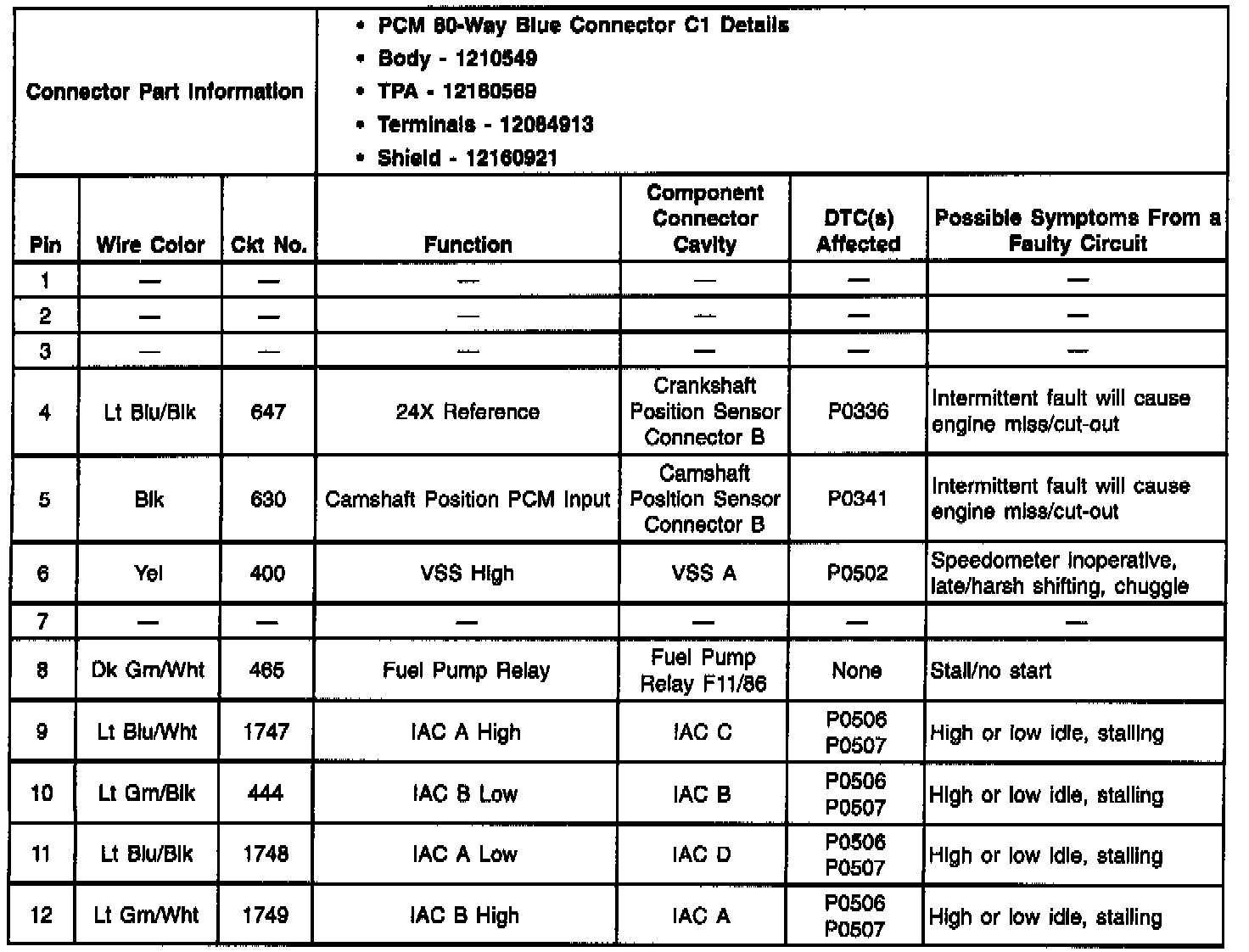 Pinout Values and Diagnostic Parameters