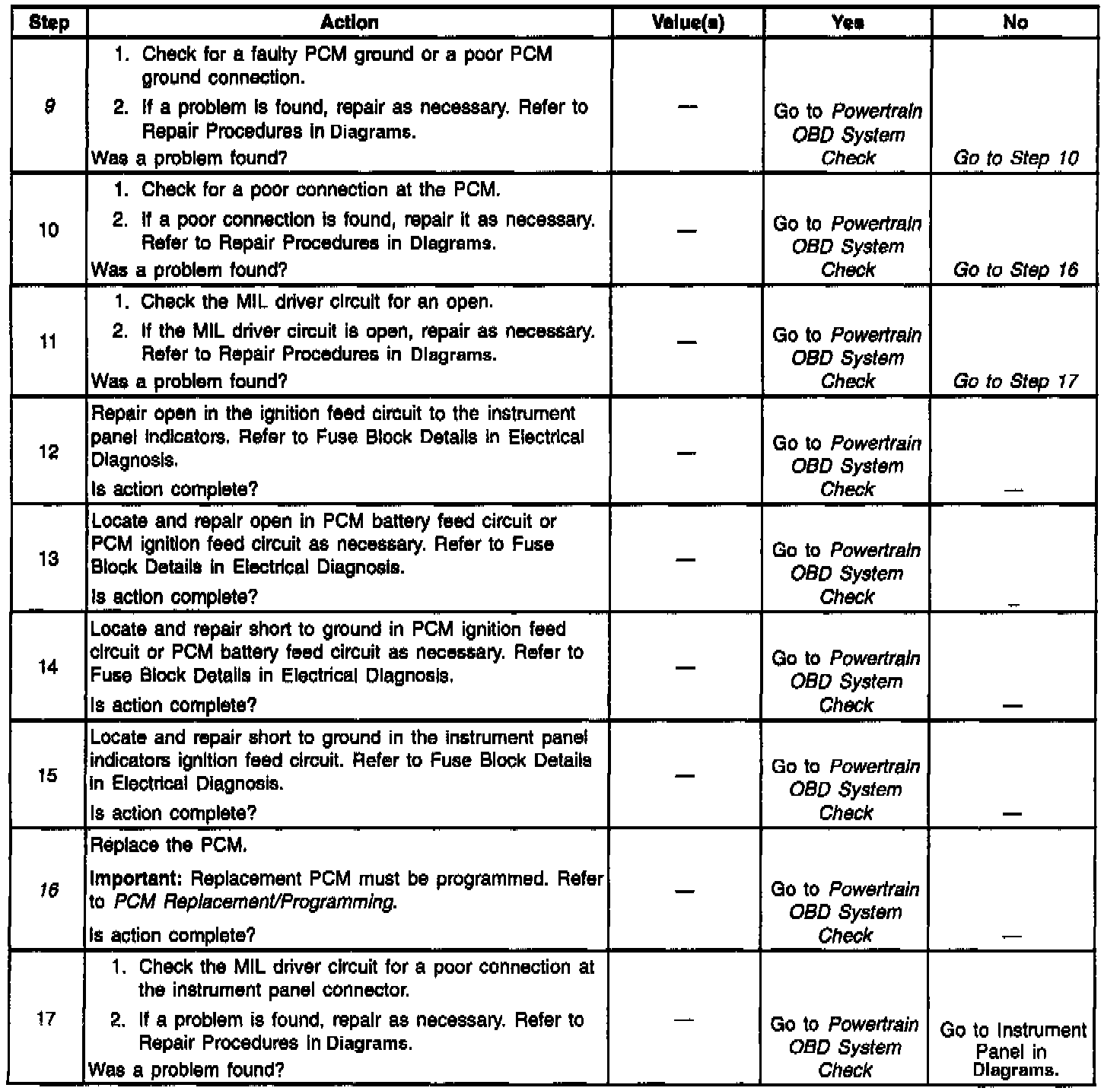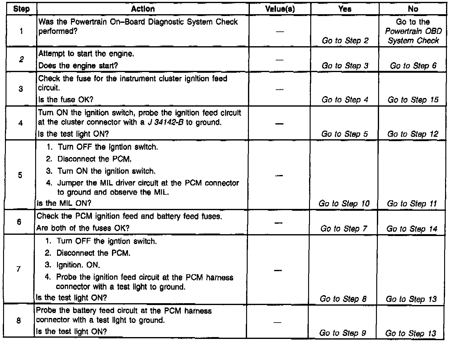 - If the engine runs OK, check for a faulty light bulb, an open in the MIL driver circuit, or an open in the instrument cluster ignition feed.