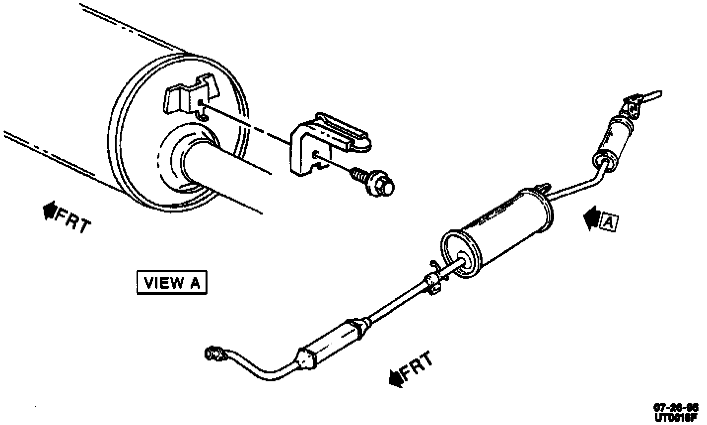 1. Position front exhaust pipe and converter to exhaust manifold and insert converter outlet to muffler.