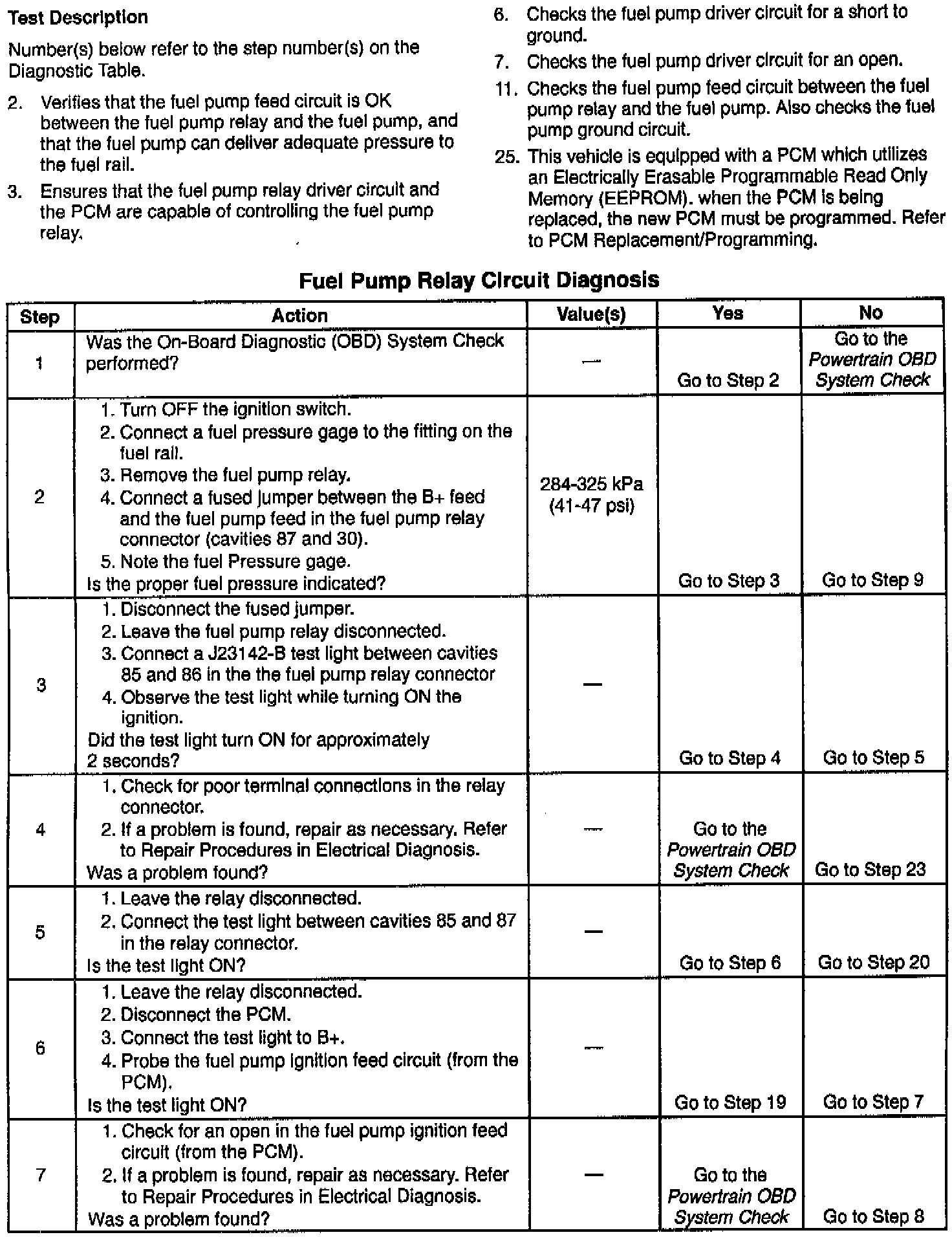 This bulletin is being issued to revise the Fuel Pump Relay Circuit Diagnosis Table. This table replaces the Fuel Pump Relay Circuit Diagnosis Table.