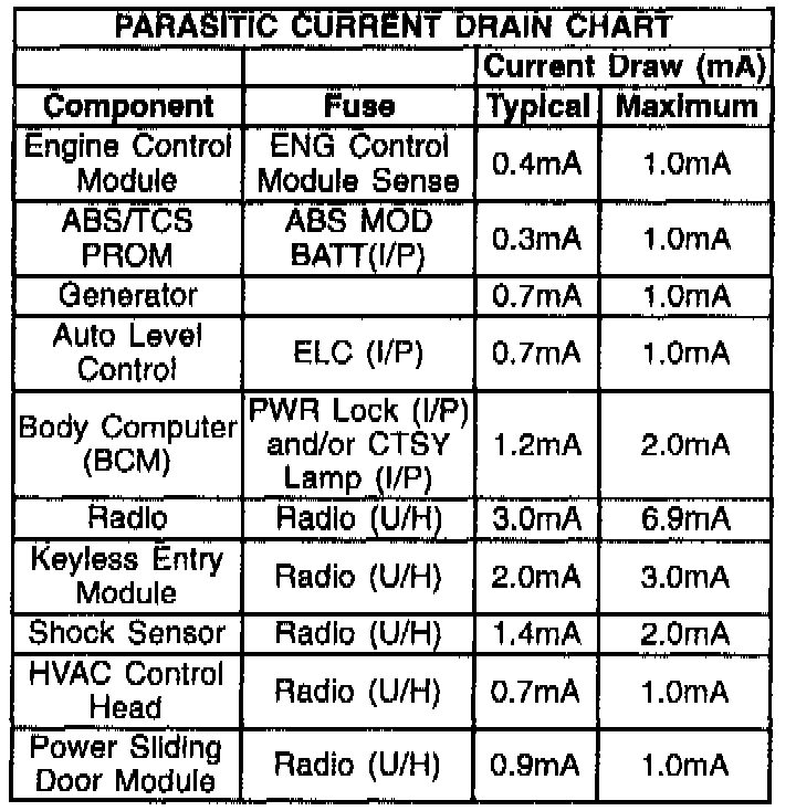 This bulletin is being issued to revise the Parasitic Drain Chart in Section 6D1 of the 1995 Service Manual and to add it to the 1996-97 Service Manual.