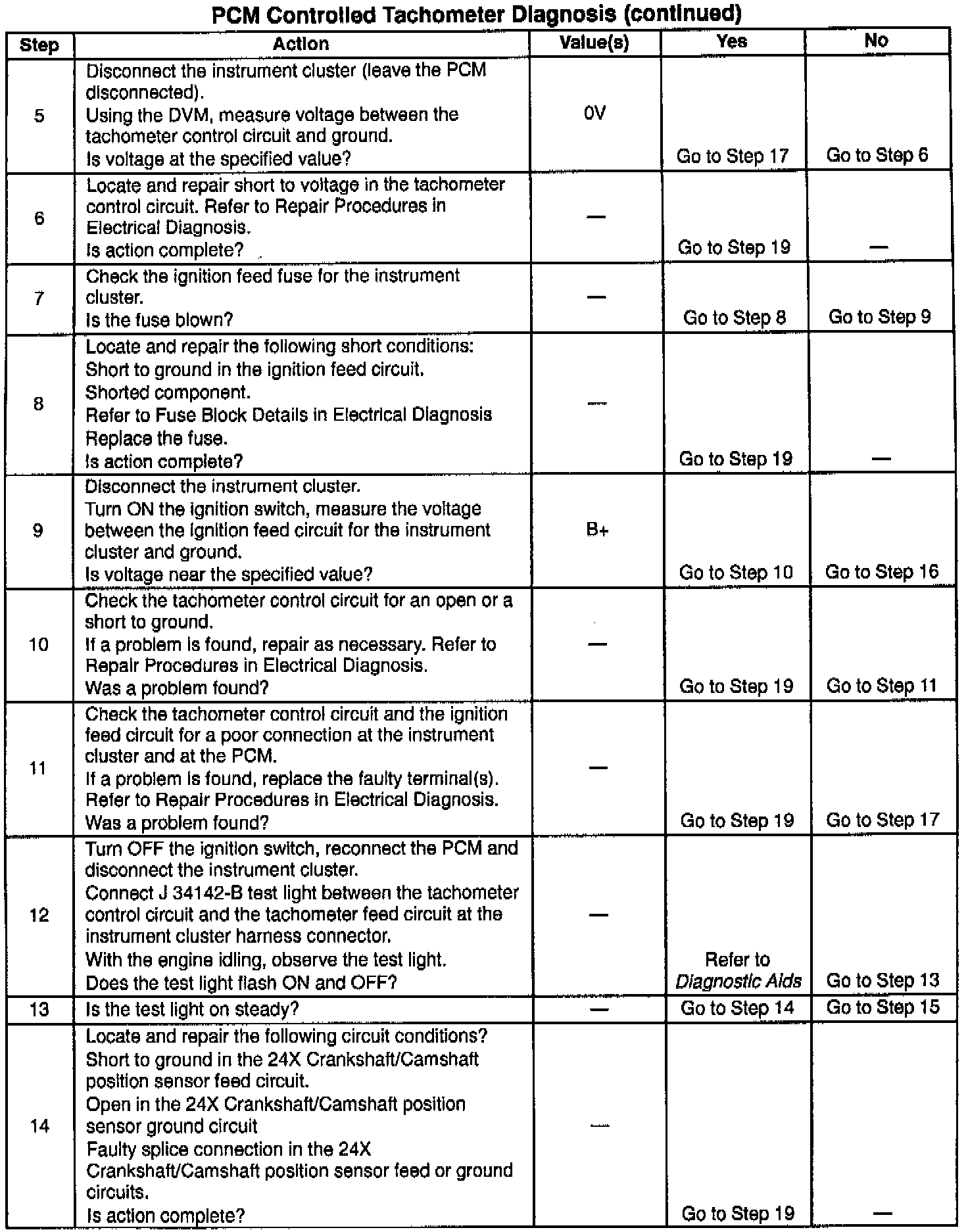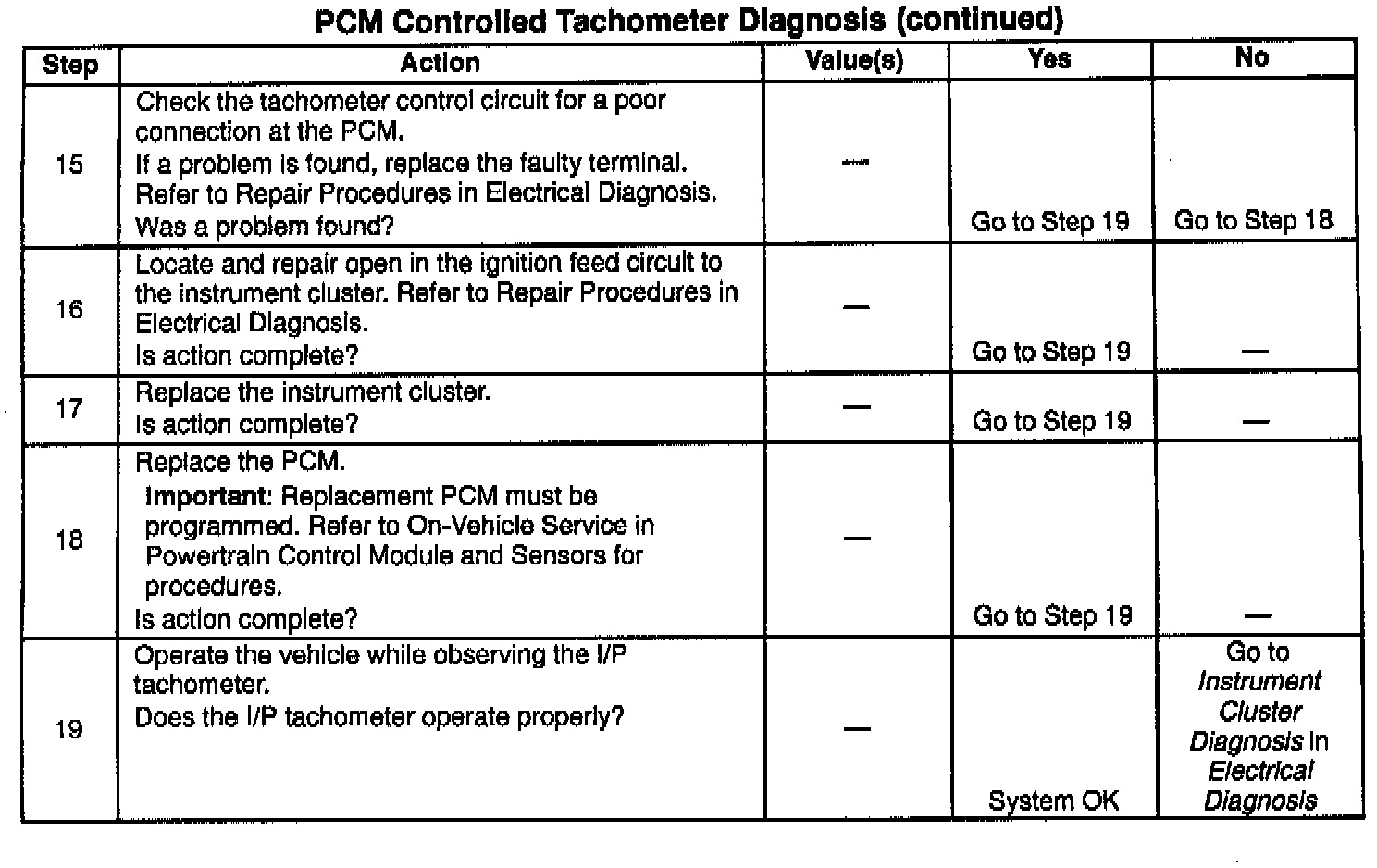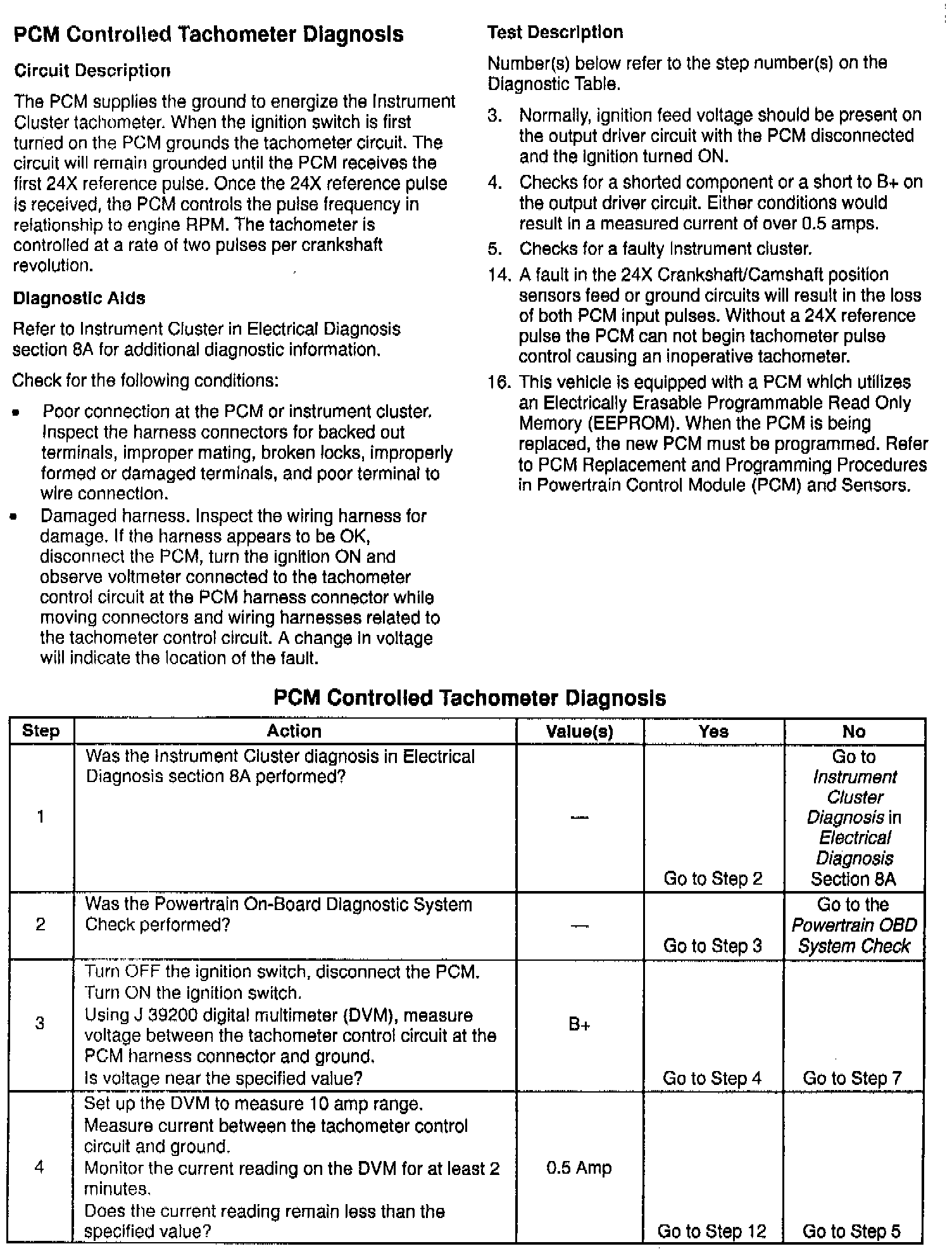 Revised PCM Controlled Tachometer Diagnosis Table