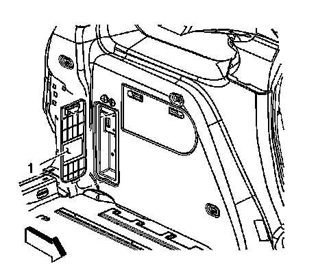 The service parts identification label (1) is located on the inside of the rear bumper fascia access hole cover. Refer to RPO Code List (RPO Codes) in General Information for a definition of the codes that are printed on the service parts identification label or referred to in this service information.