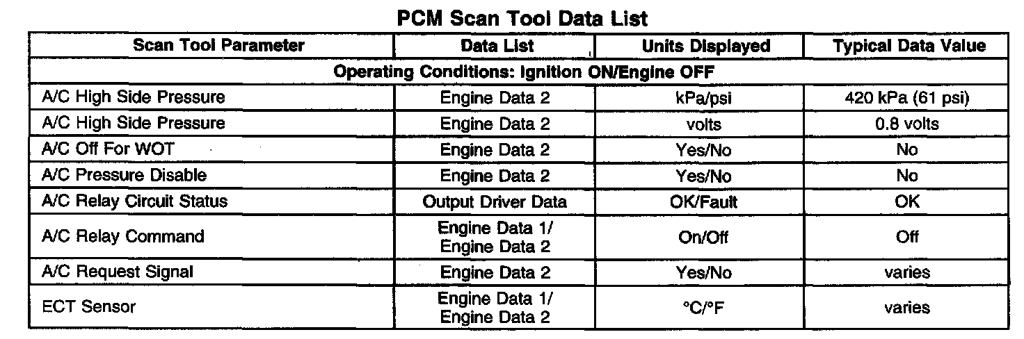 PCM Scan Tool Data List: