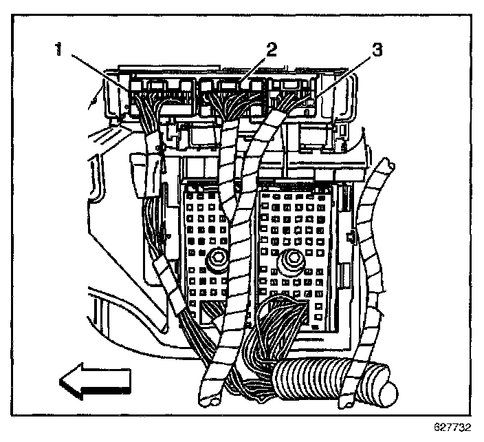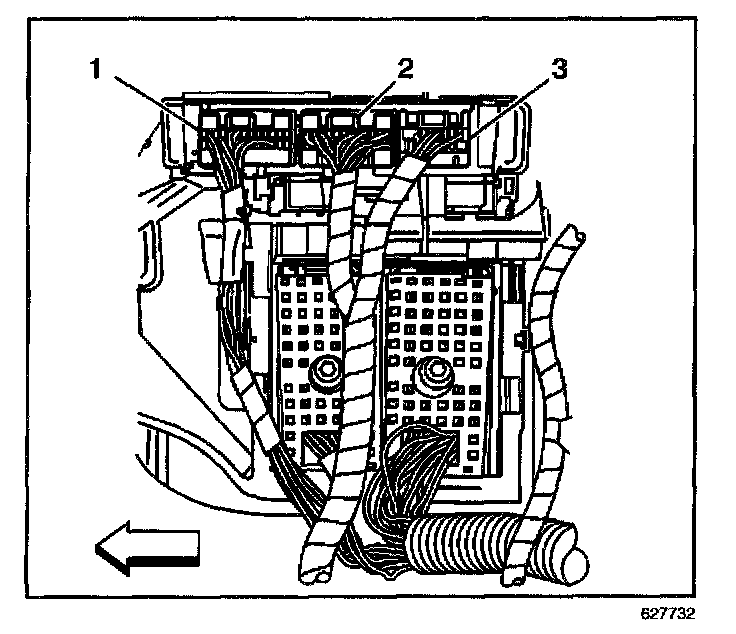 3. Disconnect the Body Control Module (BCM) electrical connectors (1, 2, 3).