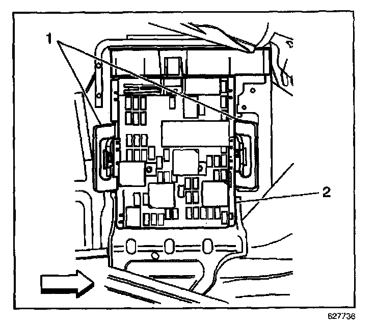 5. Install the console accessory wiring junction block electrical connectors bolts (1, 2) finger tight Until seated.