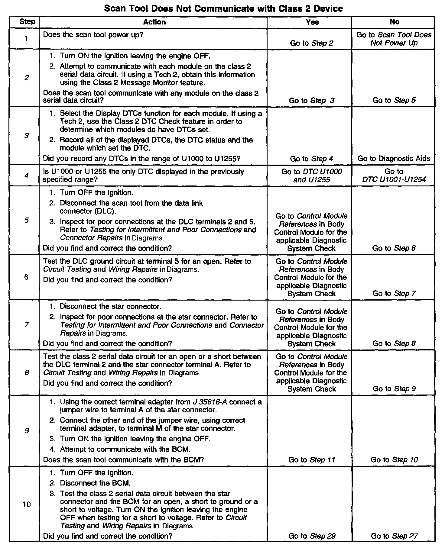 8. An open in the class 2 serial data circuit between the DLC and star connector will prevent the scan tool from communicating with any module. This condition will not set a DTC.