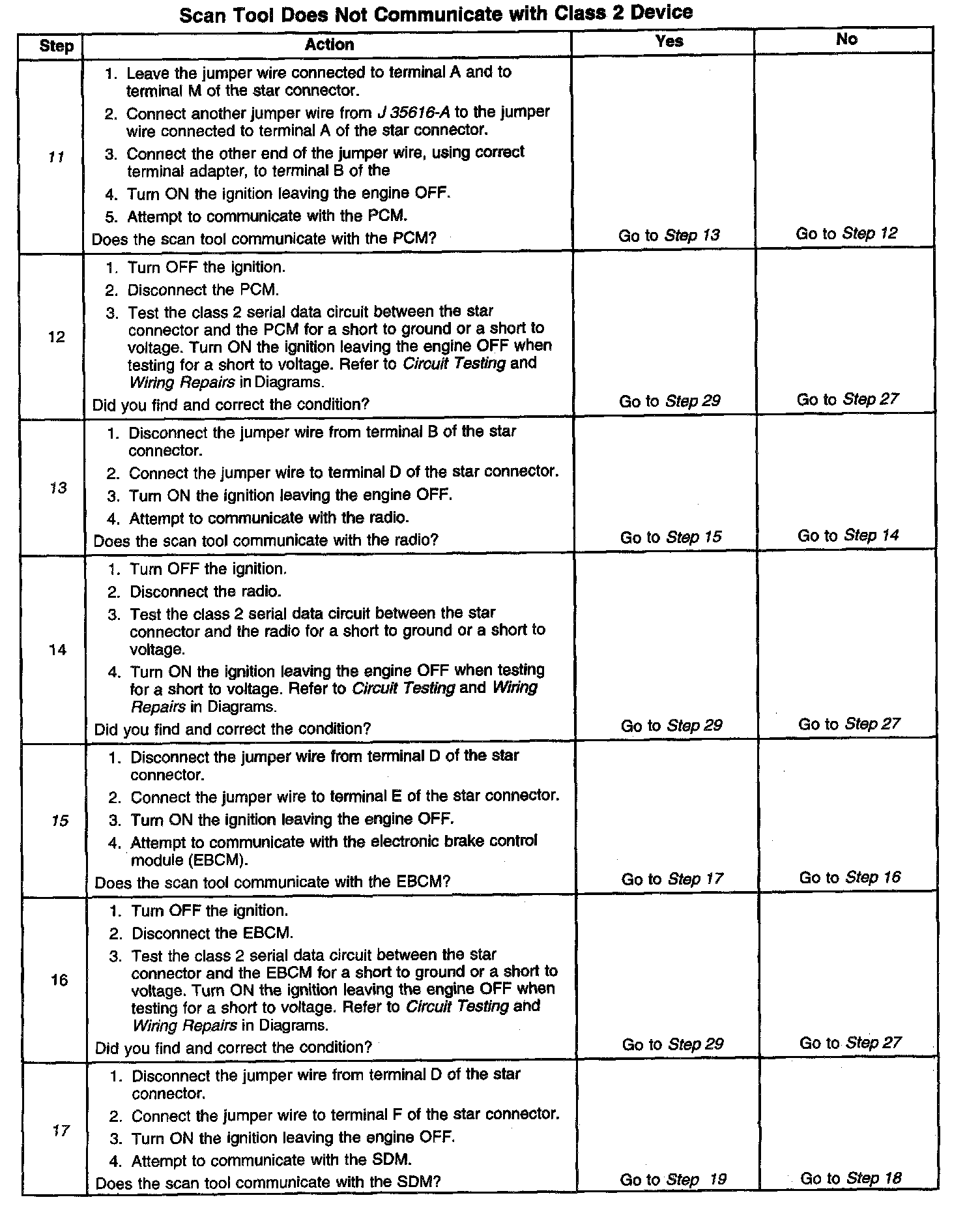 2. A partial malfunction in the class 2 serial data circuit uses a different procedure from a total malfunction of the class 2 serial data circuit. The following modules communicate on the class 2 serial data circuit: