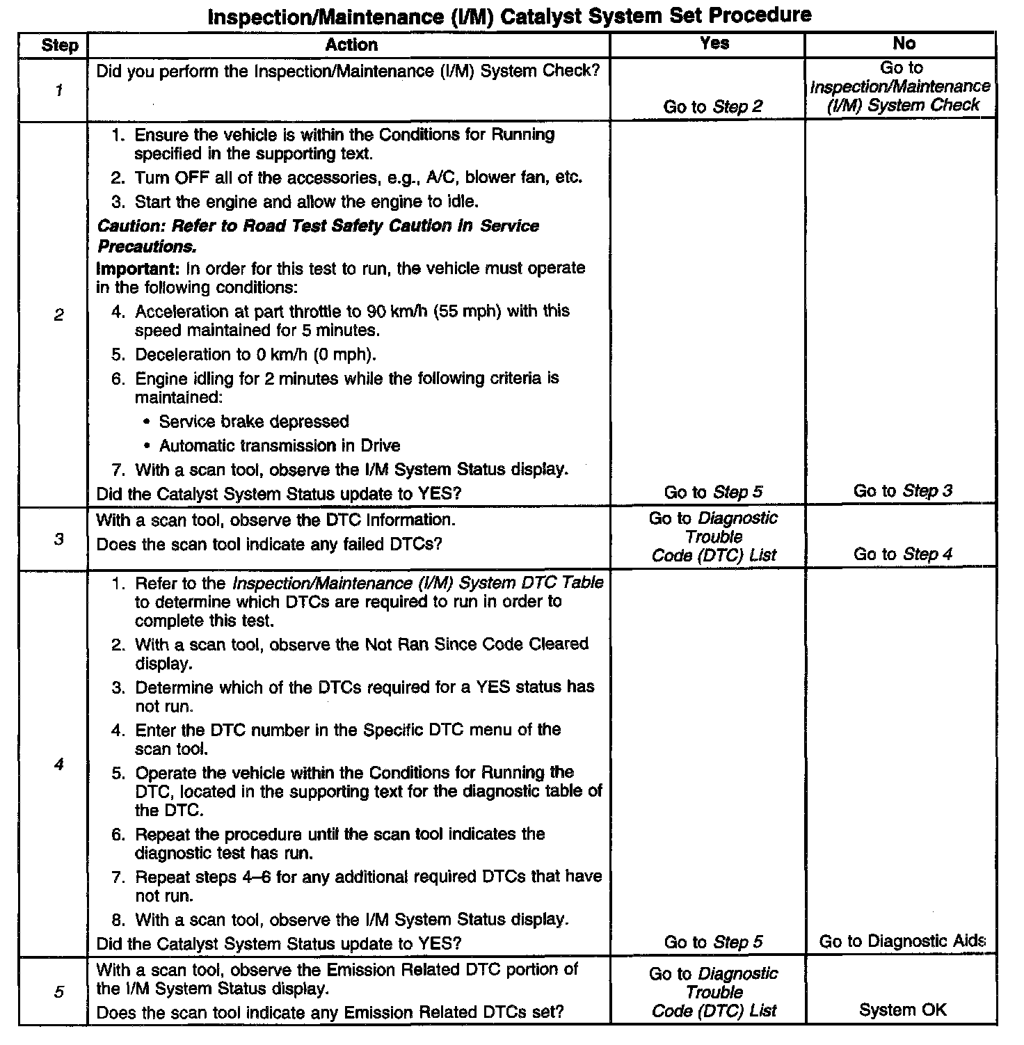 I/M Catalyst System Set Procedure