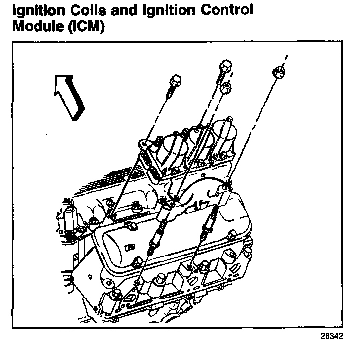 Three dual tower ignition coils are mounted to the Ignition Control Module (ICM), and are serviced individually. The ICM performs the following functions: