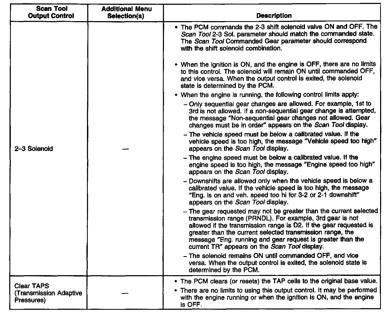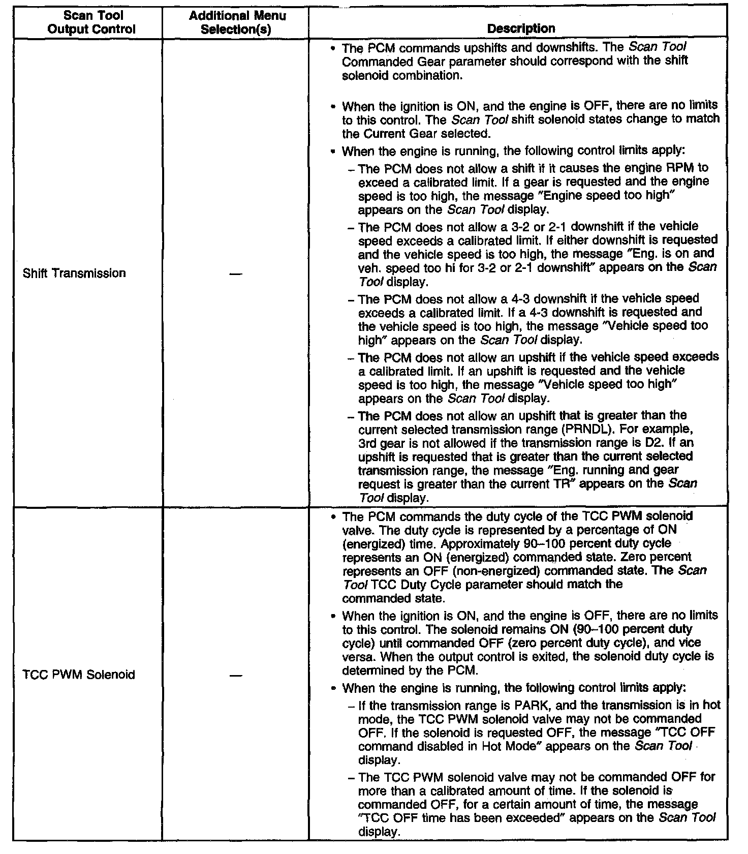 Scan Tool Output Controls