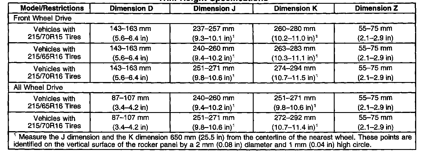 Ride/Trim Height Specifications