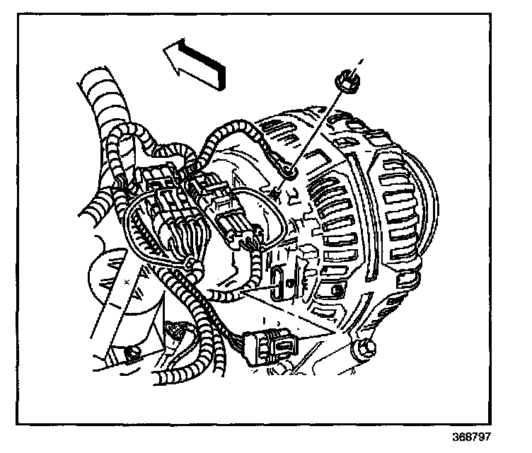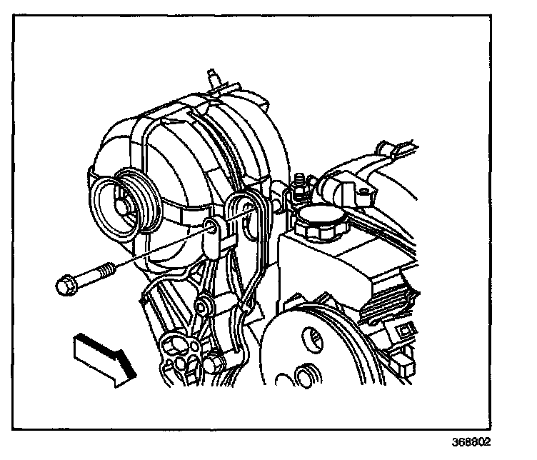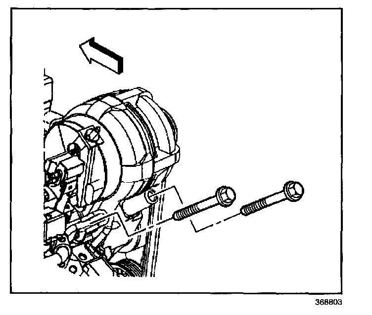 2. Rotate and secure the engine forward to access rear generator bolts. Refer to Rotating the Engine for Service Access in Engine-3.4L.