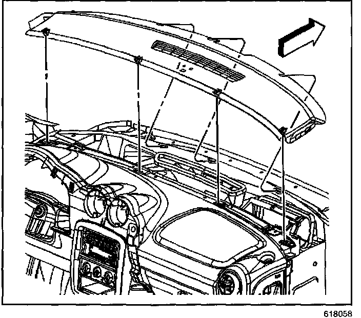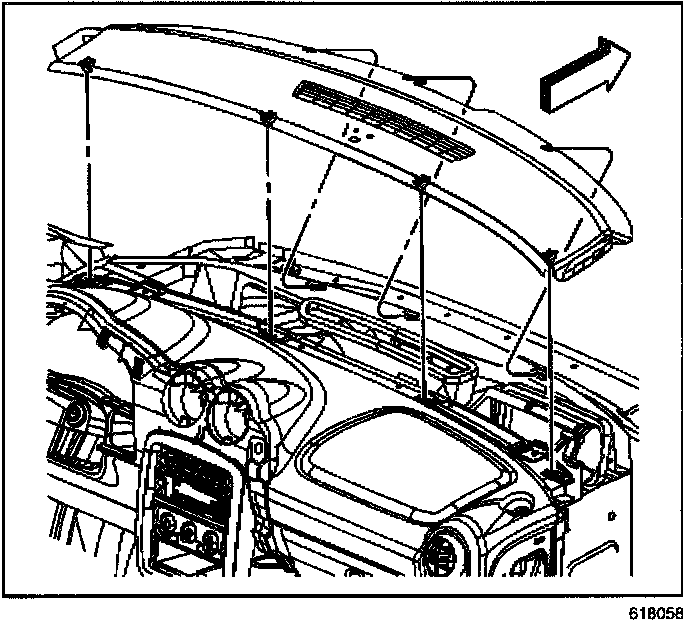 IMPORTANT: Remove the instrument panel upper trim panel slowly, the retainer clips could possibly fall into the instrument panel.