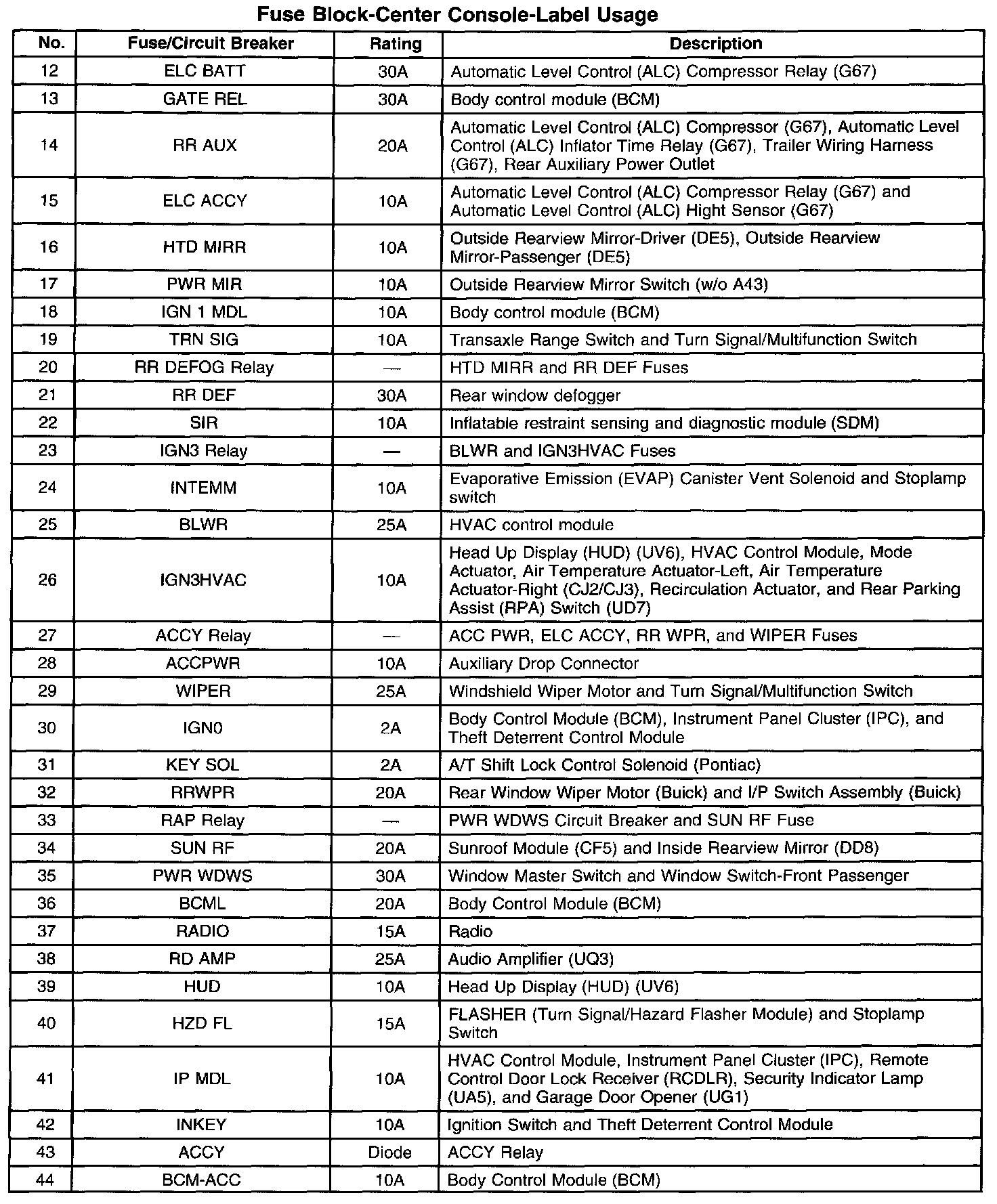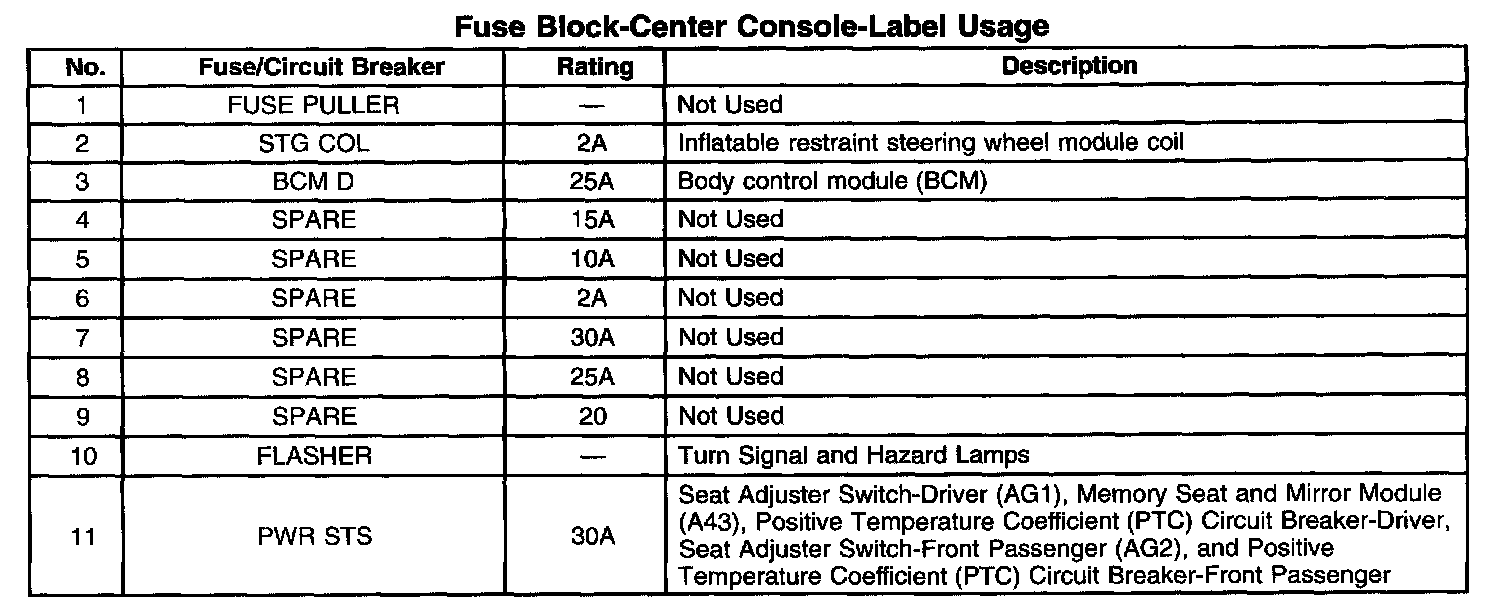 Fuse Block - Center Console - Label Usage Part 2: