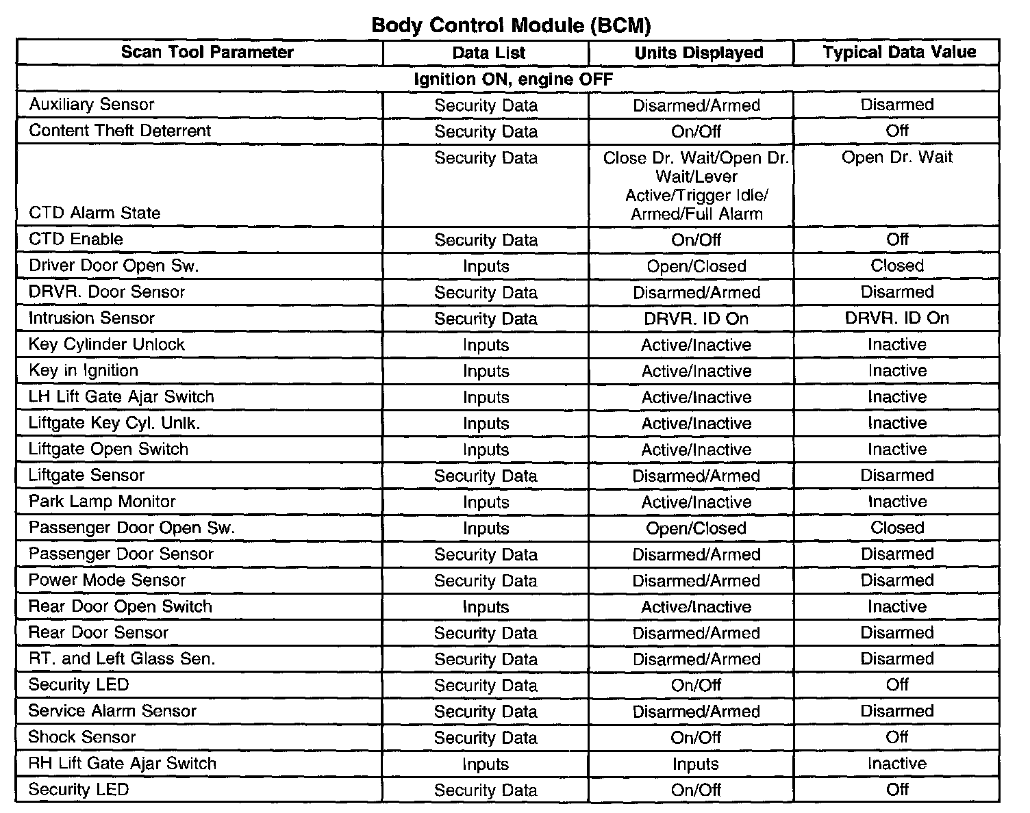 Scan Tool Data List - Antitheft System