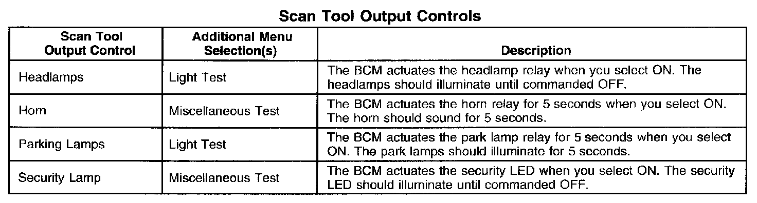 Scan Tool Output Controls: